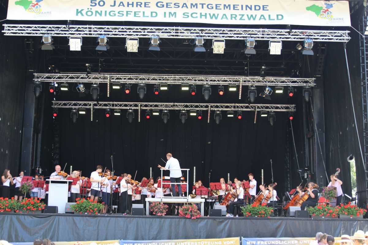 Mit einem mitreißenden und abwechslungsreichen Konzert haben die Zinzendorfschulen am vergangenen Samstag das Festwochenende zum 50-jährigen Bestehen der Gesamtgemeinde Königsfeld eröffnet. Anders als sonst fand die traditionelle Sommerserenade diesmal nicht am Abend, sondern schon am frühen Nachmittag statt – und das bei strahlendem Sonnenschein. Der Kurpark wurde zur stimmungsvollen Kulisse für ein musikalisches Highlight voller Emotionen und Energie.