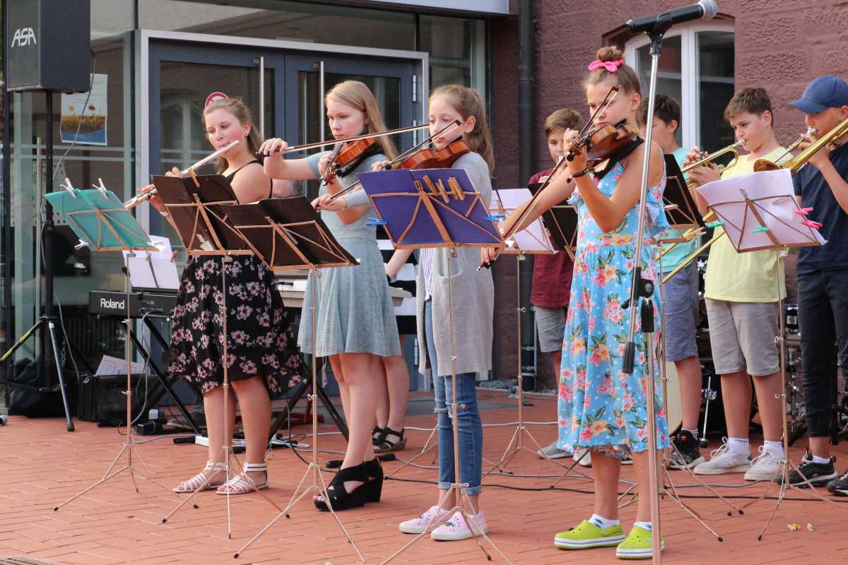 Los ging es mit den jüngsten Schülerinnen und Schülern, von denen viele ihren ersten Auftritt vor größerem Publikum hatten und ihn souverän meisterten. Das Orchester der sechsten Klassen darf sich immer ein Stück wünschen. Die Wahl fiel – wie immer in den letzten Jahren – auf die Titelmelodie des Films „Fluch der Karibik“. Auch die James-Bond-Melodie wurde schon öfter gehört, klingt aber durch die unterschiedlichen Besetzungen der Orchester jedes Mal anders. Mit dem Zirkusmarsch „Einzug der Gladiatoren“, wollte der Komponist seinerzeit beweisen, dass auch Blasmusiker durchaus zu hohem Tempo fähig sind. Rund 120 Jahre später zeigten die Siebtklässler, dass sie ihre Instrumente auch sehr gut beherrschen.