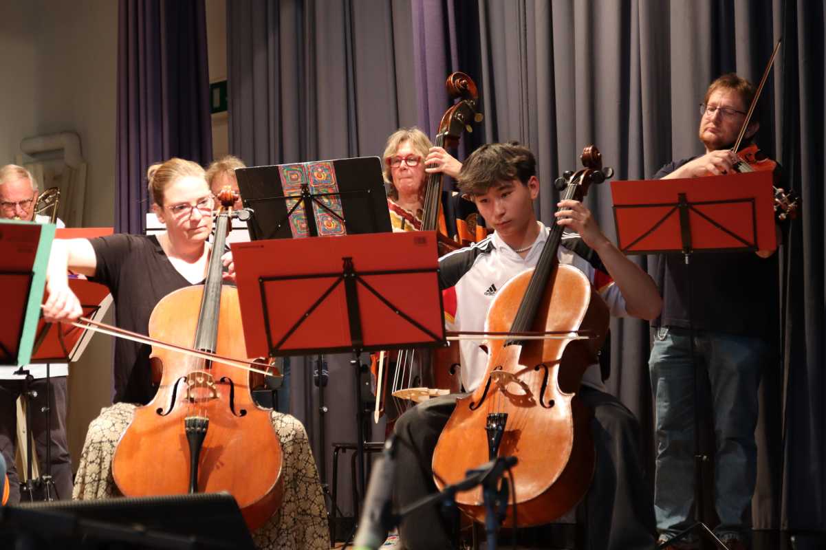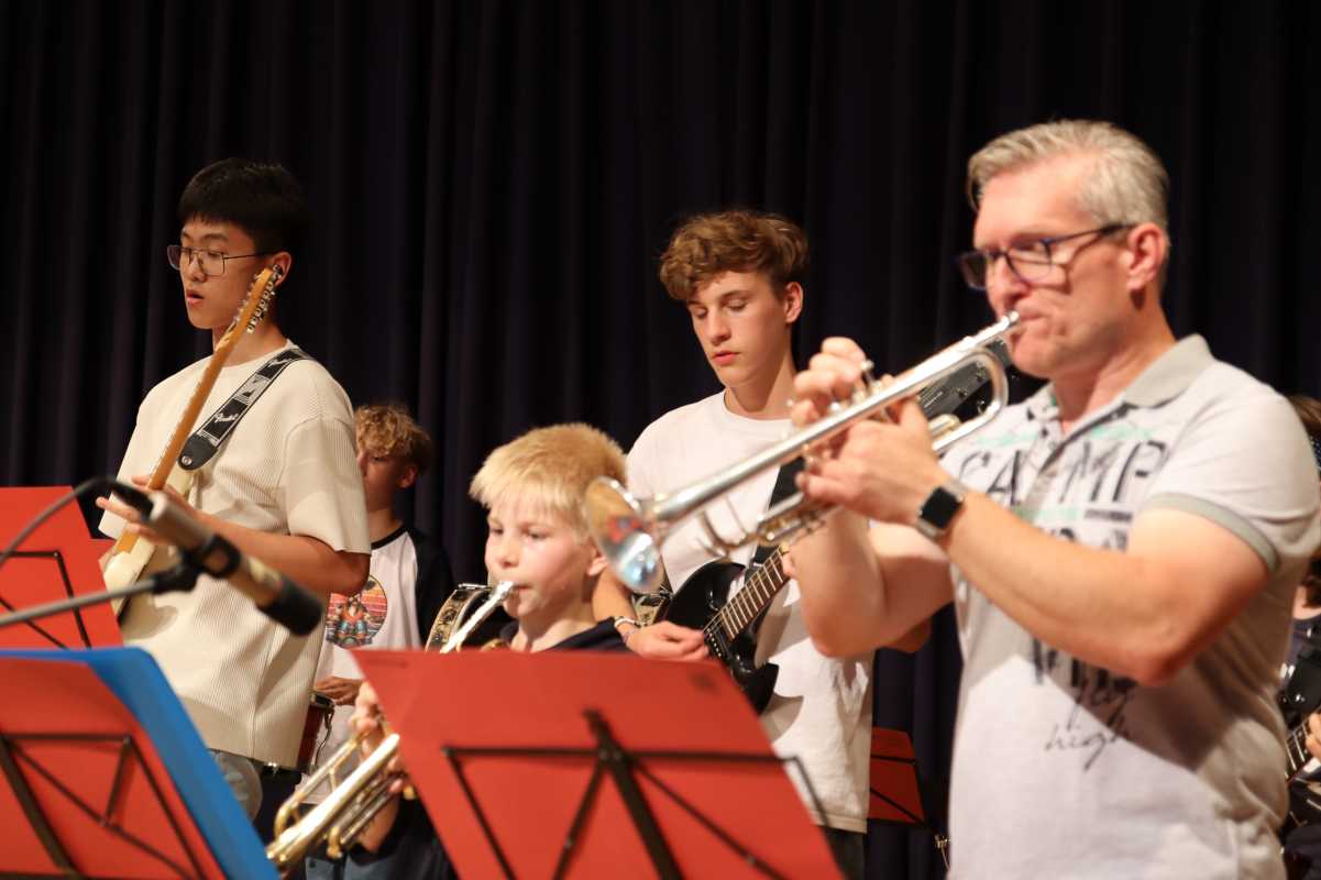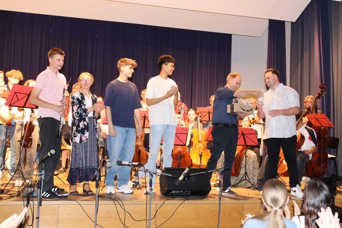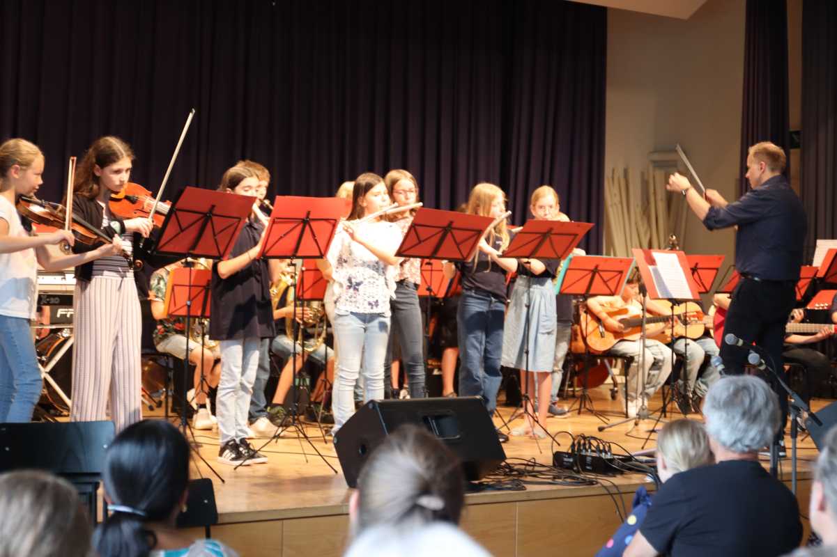Eingerahmt wurde die Sommerserenade von den Orchestern der fünften und sechsten Klassen, die unter anderem Stücke von Mozart und Verdi sowie den Disco-Hit „Y.M.C.A.“ einstudiert hatten und einer gemeinsamen Zugabe aller Beteiligten.