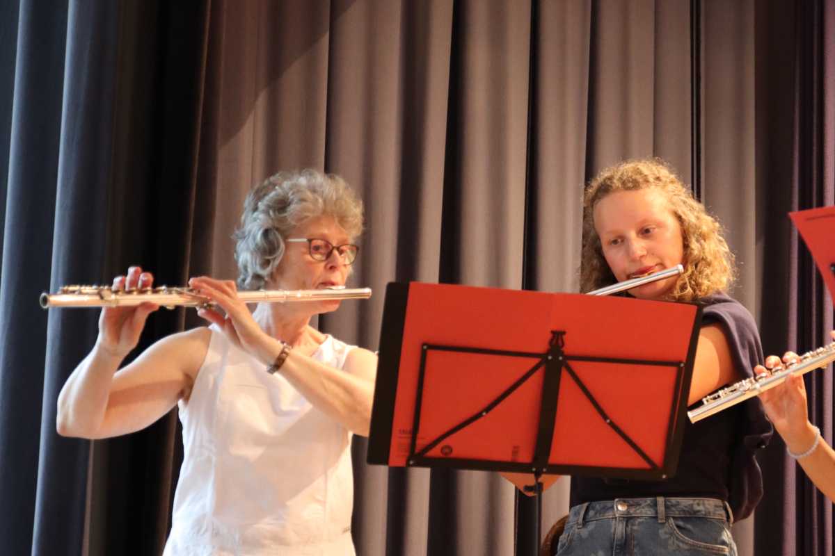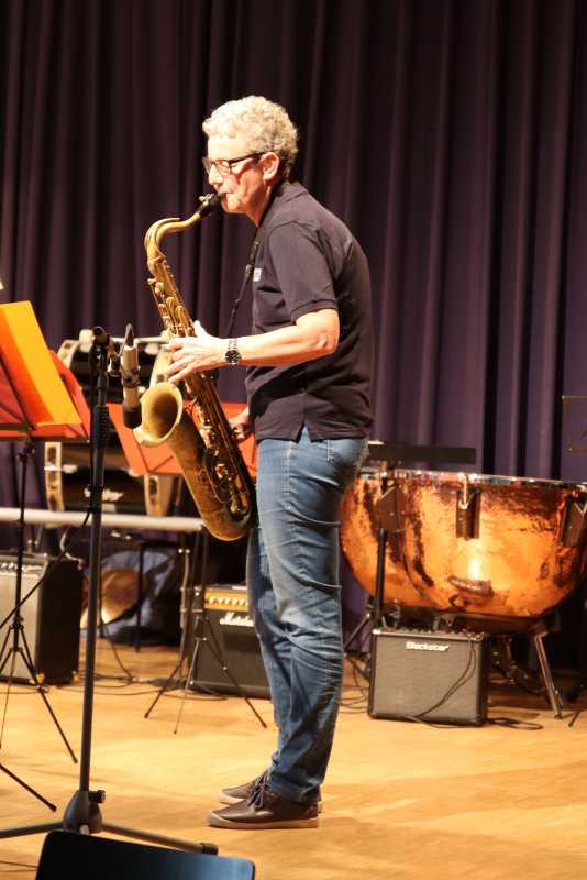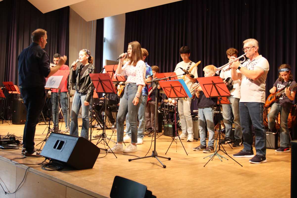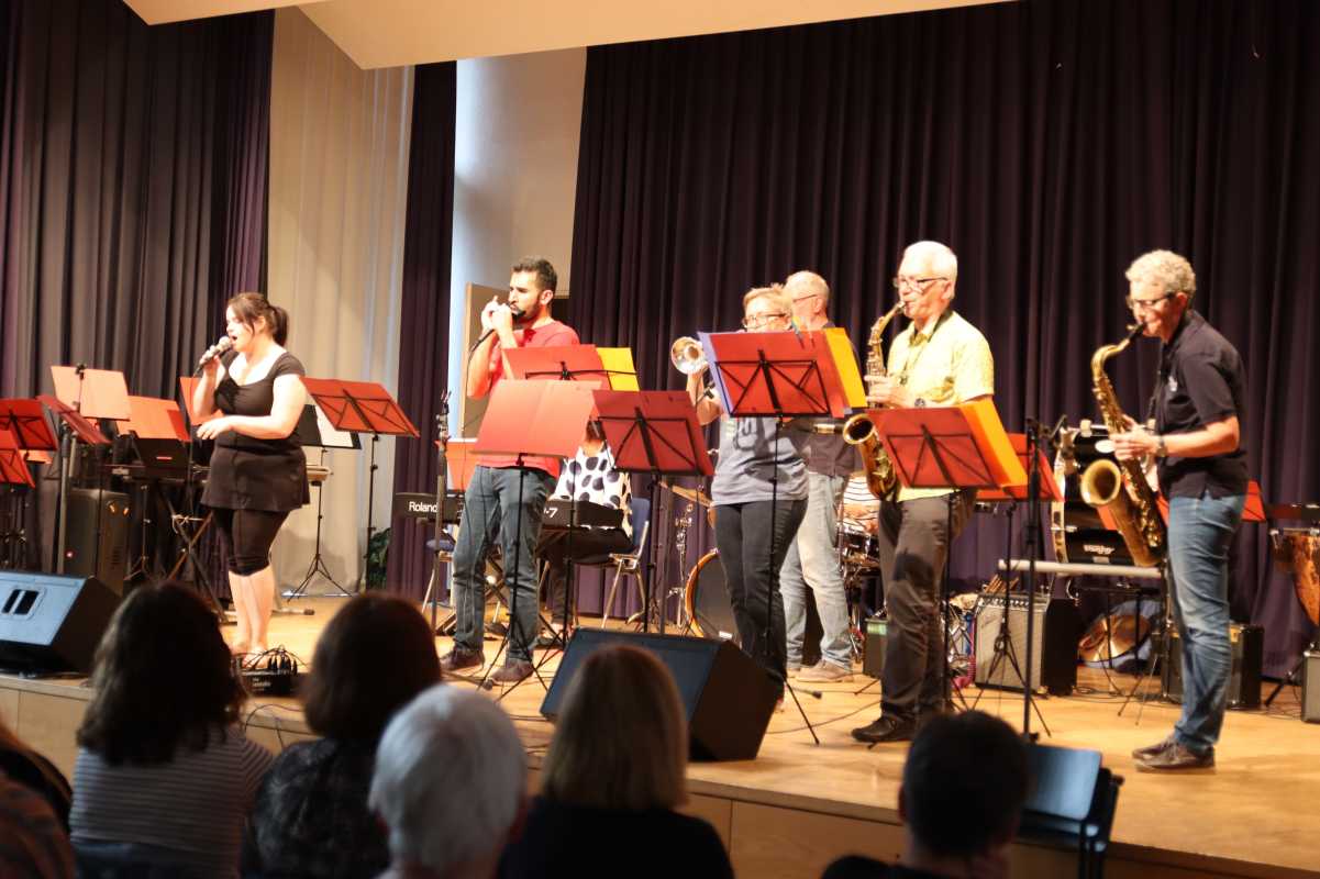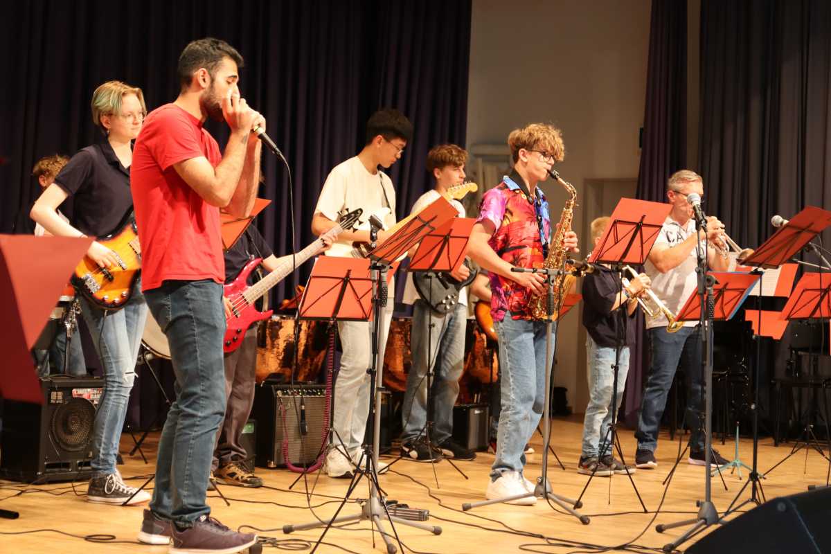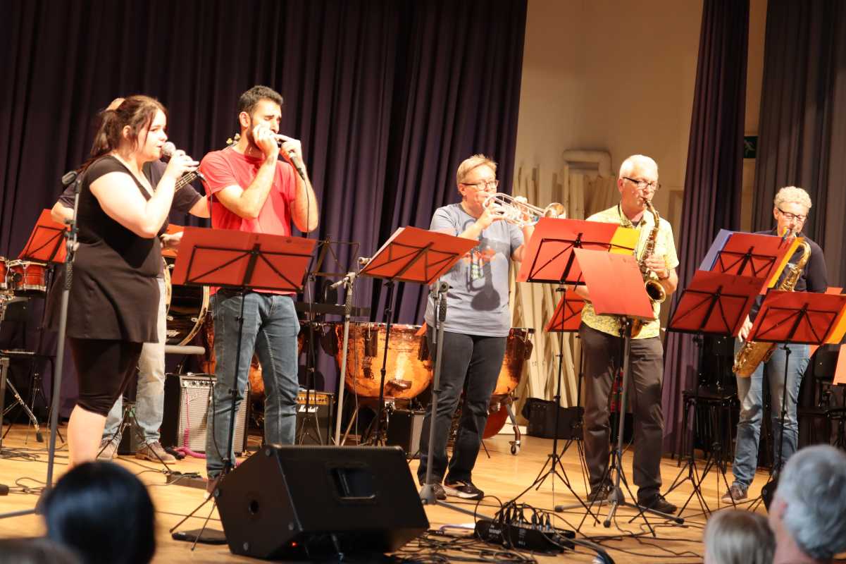 Zuvor hatten die Zinzendorf Jazz-Combo und die Jazz- und Popband mit Klassikern wie Herbie Hancocks „Cantaloupe Island“, Fats Wallers „Black & Blue“, Cool and the Gangs „Celebration“ und vielen weiteren in die Beine gehenden Songs dem Publikum eingeheizt. Neben den Sängerinnen Pia Fraas, Anica Lemcke und Demira Seubel sorgten die Solistinnen und Solisten – unter ihnen Pouyan Peymanifard (Mundharmonika), Jiawei Liu (E-Gitarre), Marga Maurer, Michael Maurer und Fynn Gerberich (Saxophon) – der beiden Ensembles immer wieder für Zwischenapplaus.