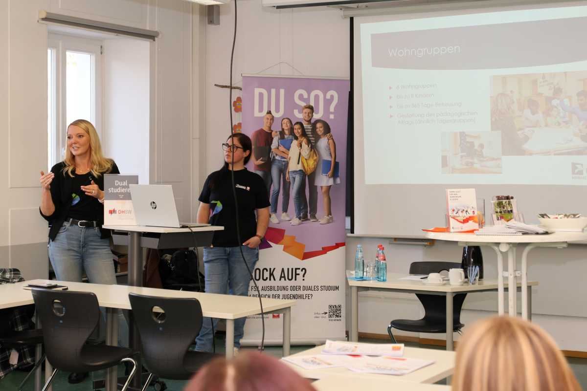 Die Veranstaltung „Sozial im Saal“ der Fachschulen für Sozialwesen und Sozialpädagogik der Zinzendorfschulen ging am Mittwoch in die zweite Runde. Dabei stellten sich große Jugendhilfeeinrichtungen aus der Region den angehenden Erzieherinnen sowie Jugend- und Heimerzieherinnen vor und gaben praxisnahe Einblicke in ihre Arbeit. Ziel des Formats war es, den Auszubildenden konkrete Eindrücke aus der beruflichen Praxis zu vermitteln und ihnen die Möglichkeit zu bieten, direkt mit potenziellen Arbeitgebern ins Gespräch zu kommen.