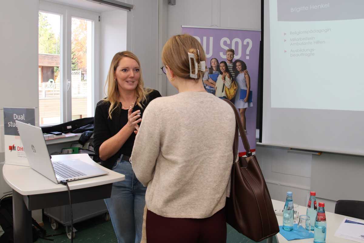 Nach der Eröffnung im historischen Speisesaal des Erdmuth-Dorotheen-Hauses präsentierten sich die Einrichtungen in zwei Durchgängen in verschiedenen Räumen. So konnten die Fachschüler*innen jeweils zwei Institutionen intensiver kennenlernen und im Anschluss gezielt Fragen stellen. Mit dabei waren die Jugendhilfeeinrichtung Mariahof, die Stiftung St. Franziskus, die Luisenklinik Bad Dürrheim, das Berufsförderungszentrum Möhringen gGmbH, der Mutpol der Diakonischen Jugendhilfe Tuttlingen e.V., das Zinzendorfinternat sowie das JUKS³.