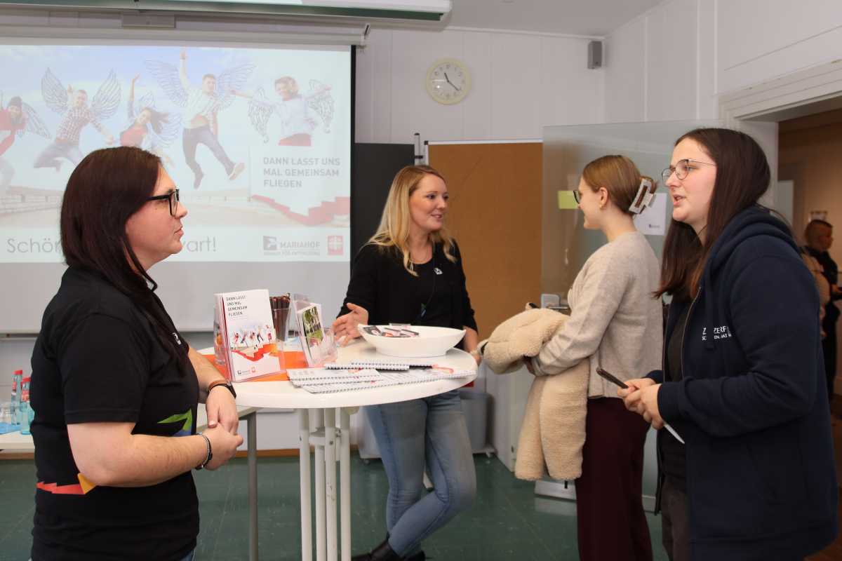 Auch von Seiten der Einrichtungen wurde das Format sehr gelobt. Brigitte Henkel, Ausbildungsbeauftragte der Facheinrichtung Mariahof, freute sich über den regen Austausch: „Es war ein super Format mit interessierten Schüler*innen und guten Gesprächen. Wir kommen nächstes Jahr auf jeden Fall wieder.“