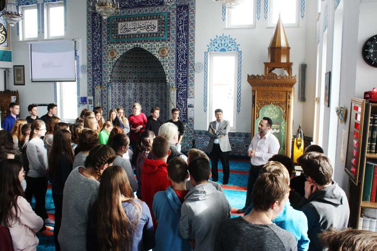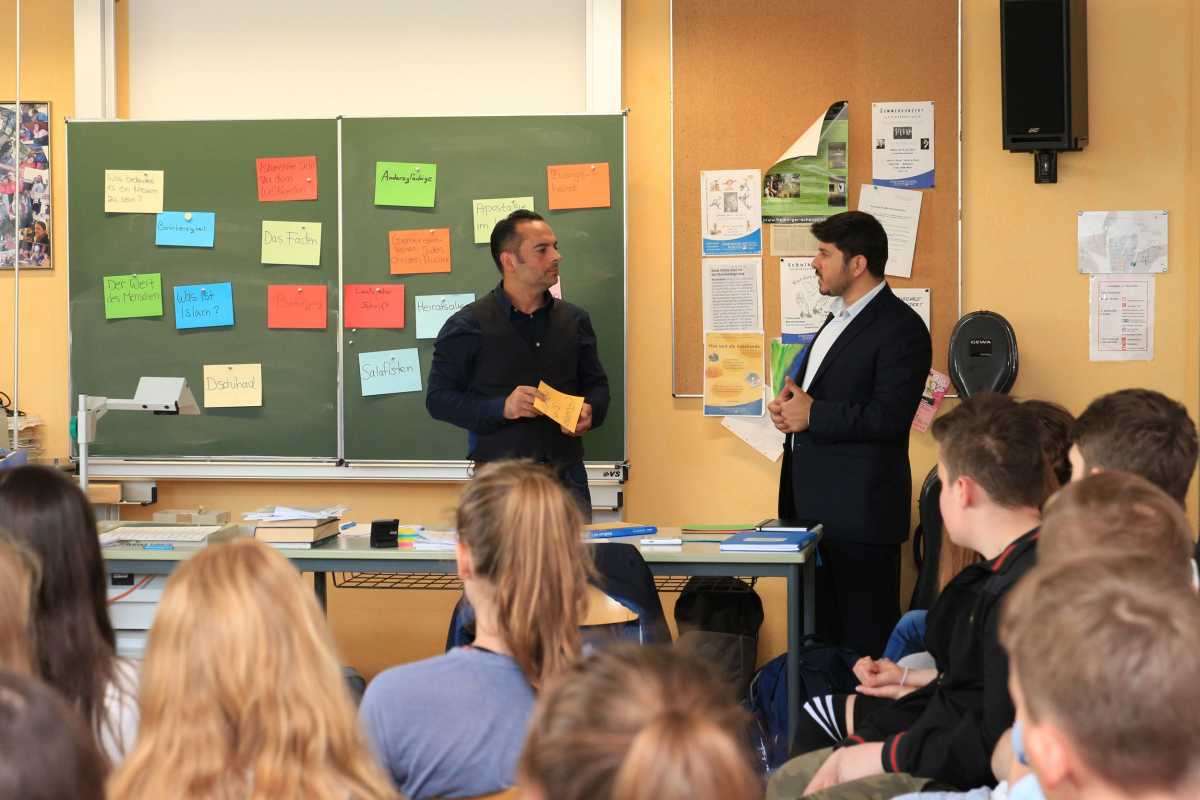 Angesichts der kontroversen Diskussion um die Rolle des Islam in unserer Gesellschaft konnten sich die Schülerinnen und Schüler der achten Klassen des Zinzendorf-Gymnasiums jetzt selbst eine Meinung bilden: Vor ein paar Wochen, als sie die Fatih-Cami-Moschee in Spaichingen besuchten und dabei die muslimischen Rituale kennenlernten und auch jetzt, als der Imam Veli Kaplan gemeinsam mit Akin Eski, der die dortige türkisch-islamische Gemeinde nach außen vertritt, zum Gegenbesuch nach Königsfeld kamen.
