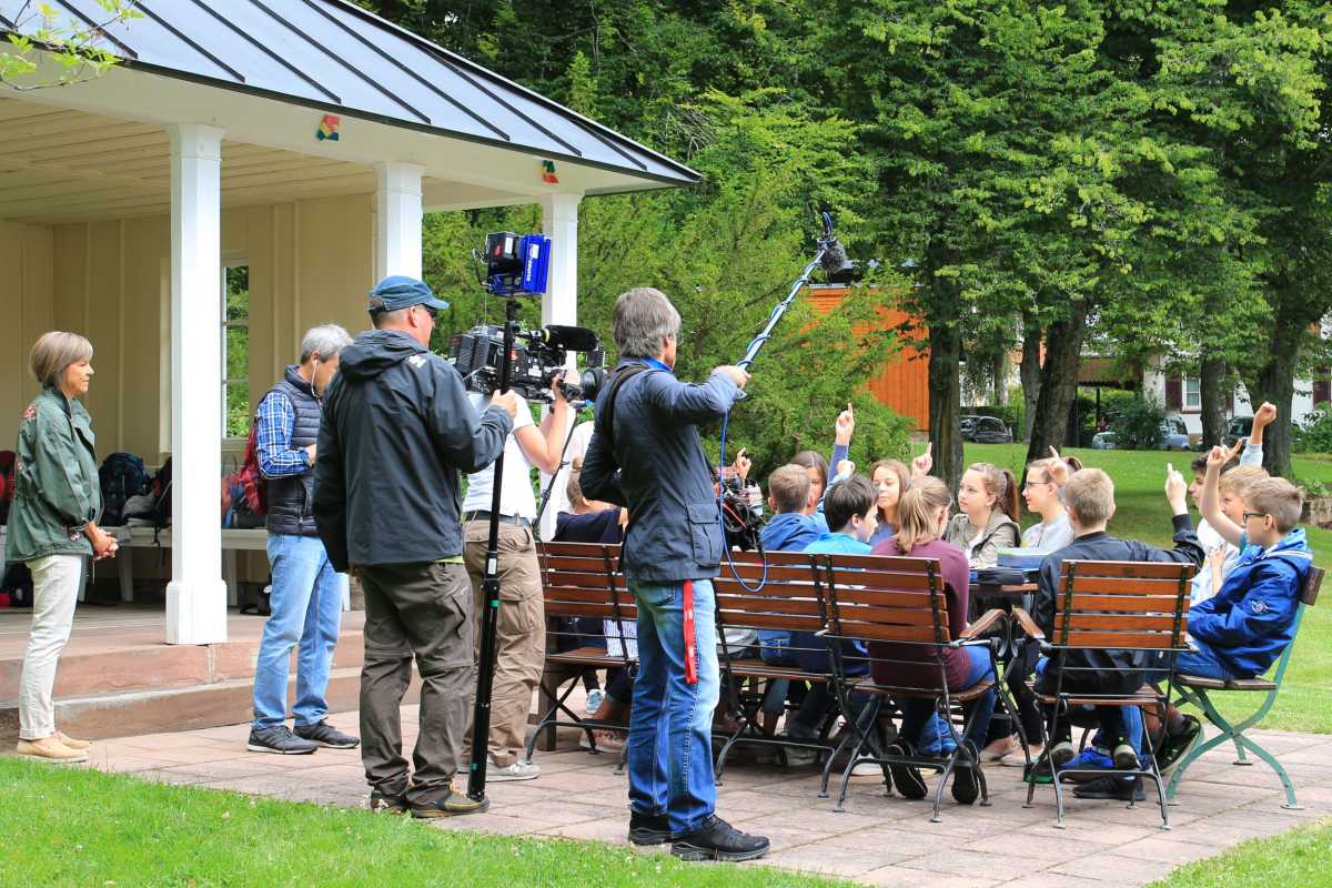 Der Drehplan war voll und eng getaktet – trotzdem war das neunköpfige Team vom SWR-Fernsehen bei aller Konzentration sehr entspannt, als es an den Zinzendorfschulen zwei Episoden für die Folge „Im Herzen des Schwarzwalds“ aus der Reihe „Expedition in die Heimat“ drehte. Zwei Kameras waren unterwegs – eine mit der Moderatorin Annette Krause, die sich neugierig in der Schule und im Internat umsah, eine weitere, um das bunte Leben an den Zinzendorfschulen einzufangen und dafür verschiedenen Klassen und AGs über die Schulter zu schauen.