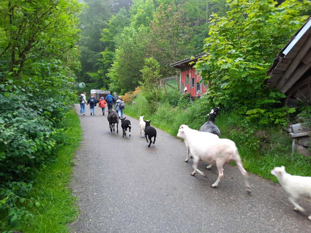 Die fünften Klassen des Gymnasiums haben die erste Juni-Woche genutzt, um sich im Rahmen des Erdkunde-Unterrichts in unserer Region beim Untermühlbachhof in Peterzell / Buchenberg über den Alltag eines kleinen Familienbetriebs zu informieren.