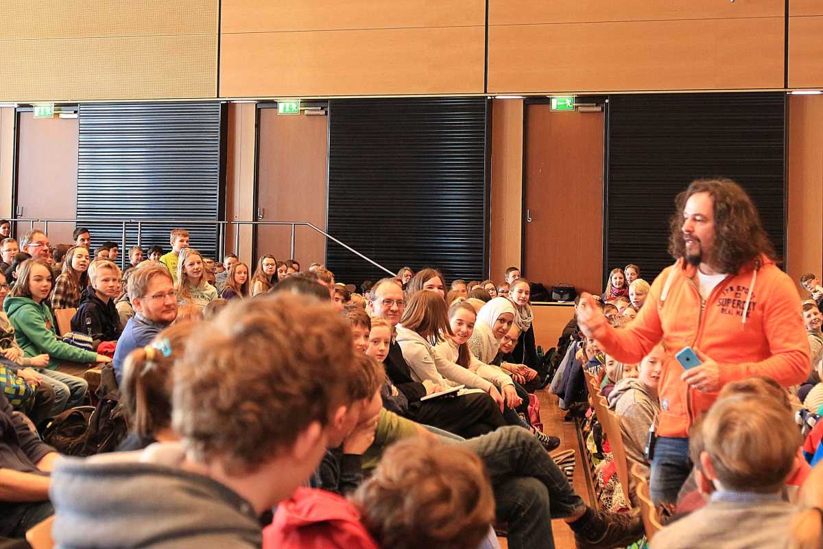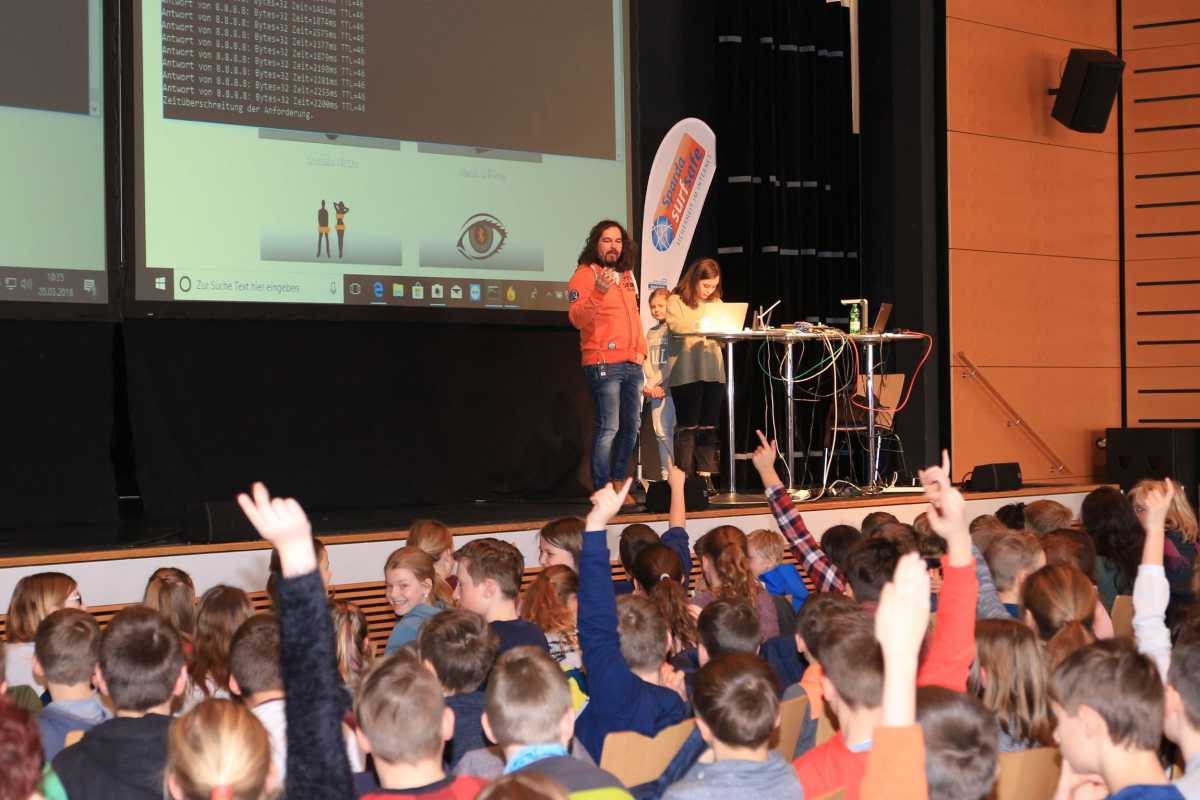 Das mobile Internet gehört schon für die Jüngsten zum Alltag. Weit mehr als die Hälfte der rund 800 Schülerinnen und Schüler der Region, darunter die fünften und sechsten Klassen der Zinzendorfschulen, meldeten sich, als der Profi-Hacker Erwin Markowsky in der Neuen Tonhalle in Villingen fragte, wer am Morgen vor der Schule schon WhatsApp genutzt habe. Der Münchener, der hauptberuflich die Software von Banken und anderen Unternehmen auf Schwachstellen testet, brachte den Jugendlichen auf Einladung der Sozialstiftung der Sparda-Bank Baden-Württemberg im Rahmen des Projektes SpardaSurfSafe das Thema Handysicherheit sehr unterhaltsam nahe.