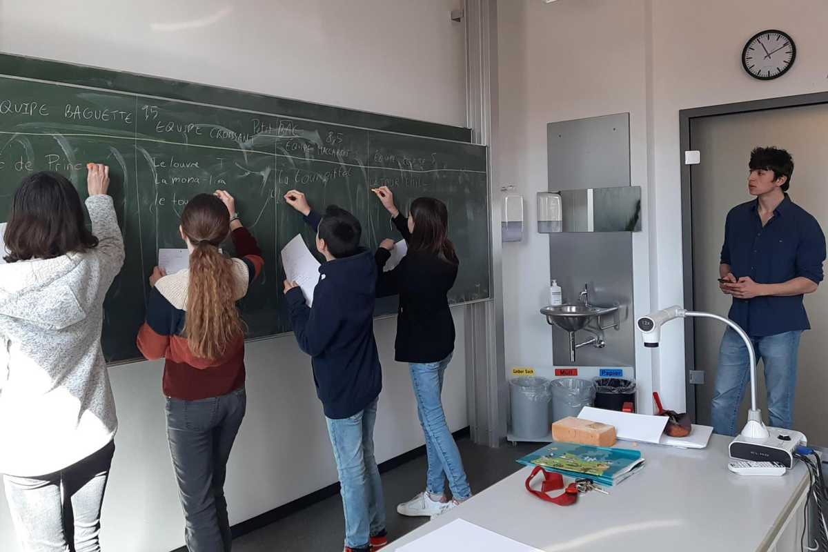 Fremdsprachen zu lernen ist toll, und wenn man sich mit einem Muttersprachler auch noch unterhalten kann, ist das Erfolgserlebnis umso größer. Daher laden die Zinzendorfschulen auch regelmäßig das FranceMobil ein. In diesem Jahr besuchte der 24-jährige Philosphiestudent Marc Ripoll Serra einen Vormittag lang die Klassen 6b, 7b, 7c und 8c. Er brachte den Schüler*innen spielerisch jede Menge französische Sehenswürdigkeiten und Städte nahe – auf Französisch natürlich.