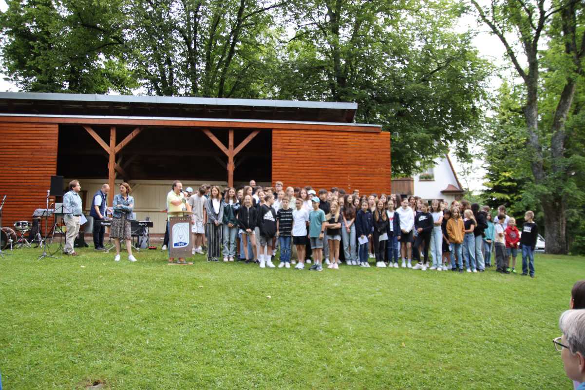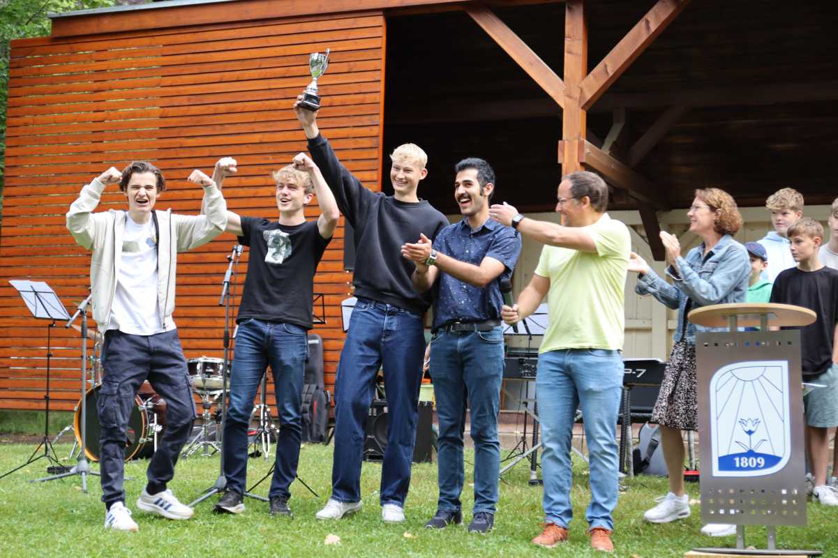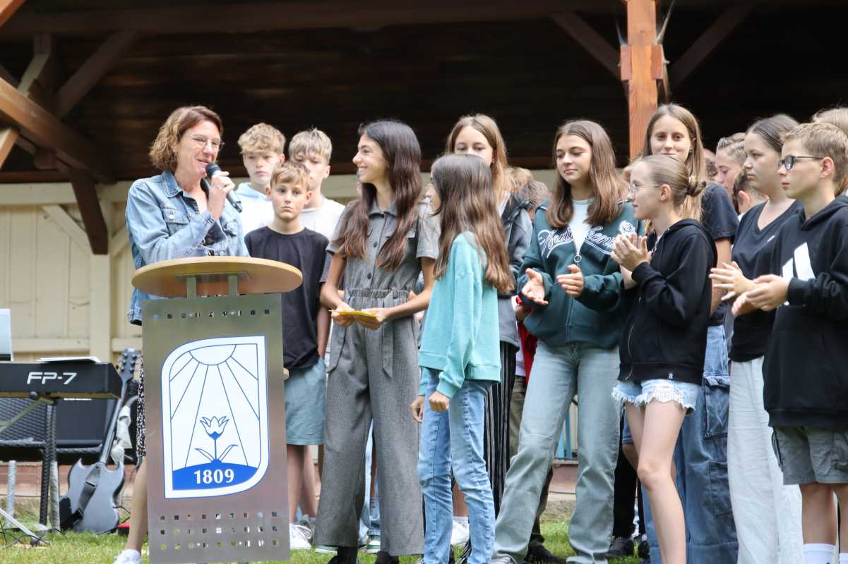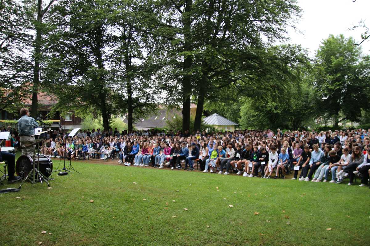 Mit einem Gottesdienst im Park des Erdmuth-Dorotheen-Hauses wurden die Schülerinnen und Schüler in die Ferien verabschiedet. Neben dem liturgischen und musikalischen Teil gab es dabei auch Raum, die Sportlerinnen und Sportler für ihre Leistungen zu ehren. Wie viele sich in den verschiedensten Sparten wie Golf, Schwimmen, Hallenhockey, Basketball, Volleyball und Leichtathletik engagiert hatten, zweigte sich, als alle Teilnehmenden der Jugend-Trainiert-für-Olympia-Wettbewerbe nach vorne gebeten wurden.