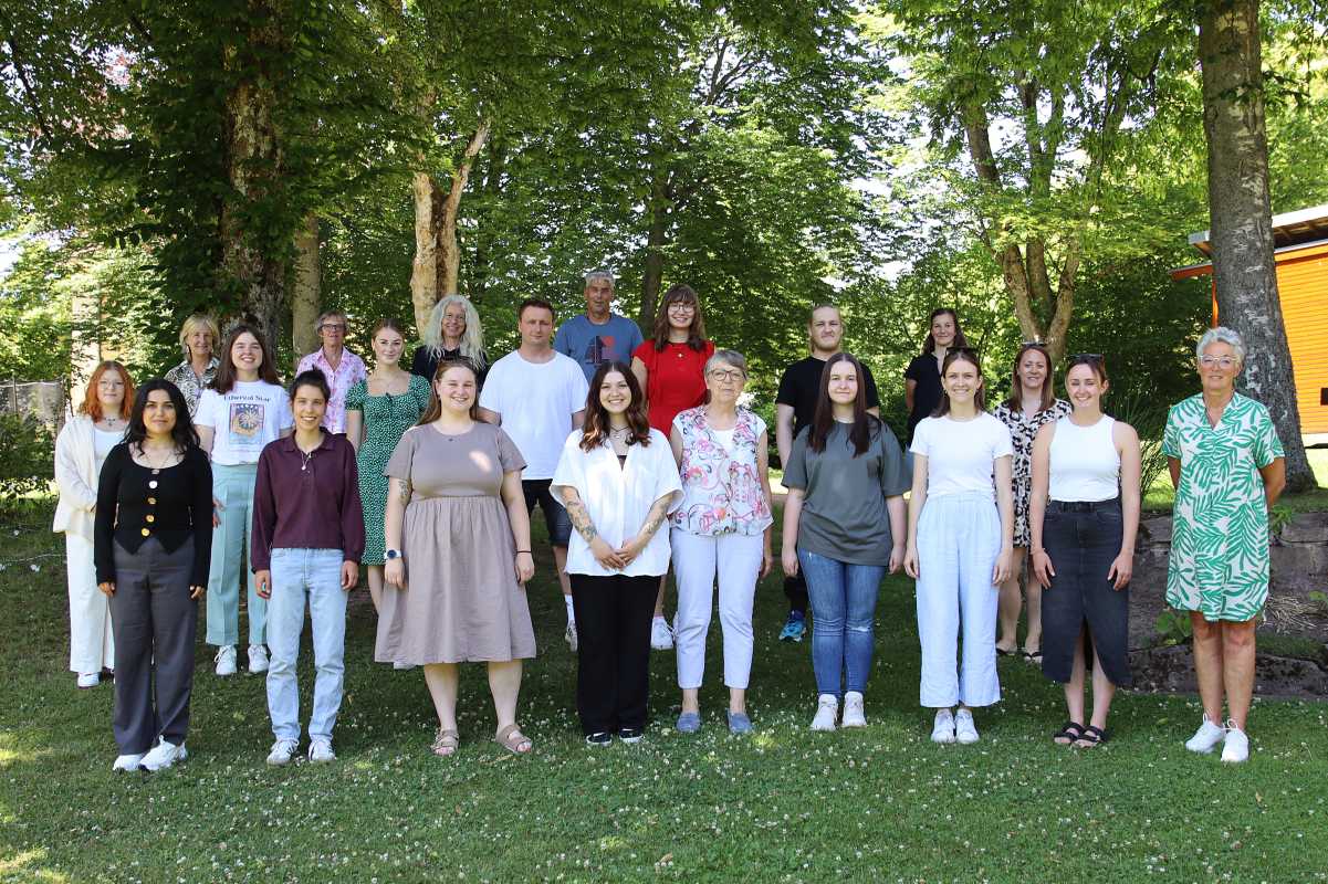 Herzlichen Glückwunsch: Nach ihrem Anerkennungsjahr und bestandenem Kolloquium haben alle 14 Absolvent*innen der Fachschule für Sozialwesen der Zinzendorfschulen die staatliche Anerkennung als Jugend- und Heimerzieher und den Titel Bachelor in Sozialwesen erworben. Die Leiterin der Abteilung Sozialpädagogik der Zinzendorfschulen, Sandra Bandholz (vorne rechts) und die Fachlehrerinnen- und lehrer freuen sich mit Sarah Maria Armbruster, Nicole Aust, Sabrina Breitsprecher, Philine Lea Hartmann, Esther Hillmann Nathalie Kathrin Jester, Larissa Kirch, Lena Maria Kuhner, Tim Obergfell, Leonie Riedlinger, Katja Riedmüller, Marie-Sophie Schnee, Sevan Shikho und Lasse Samuel Umland.