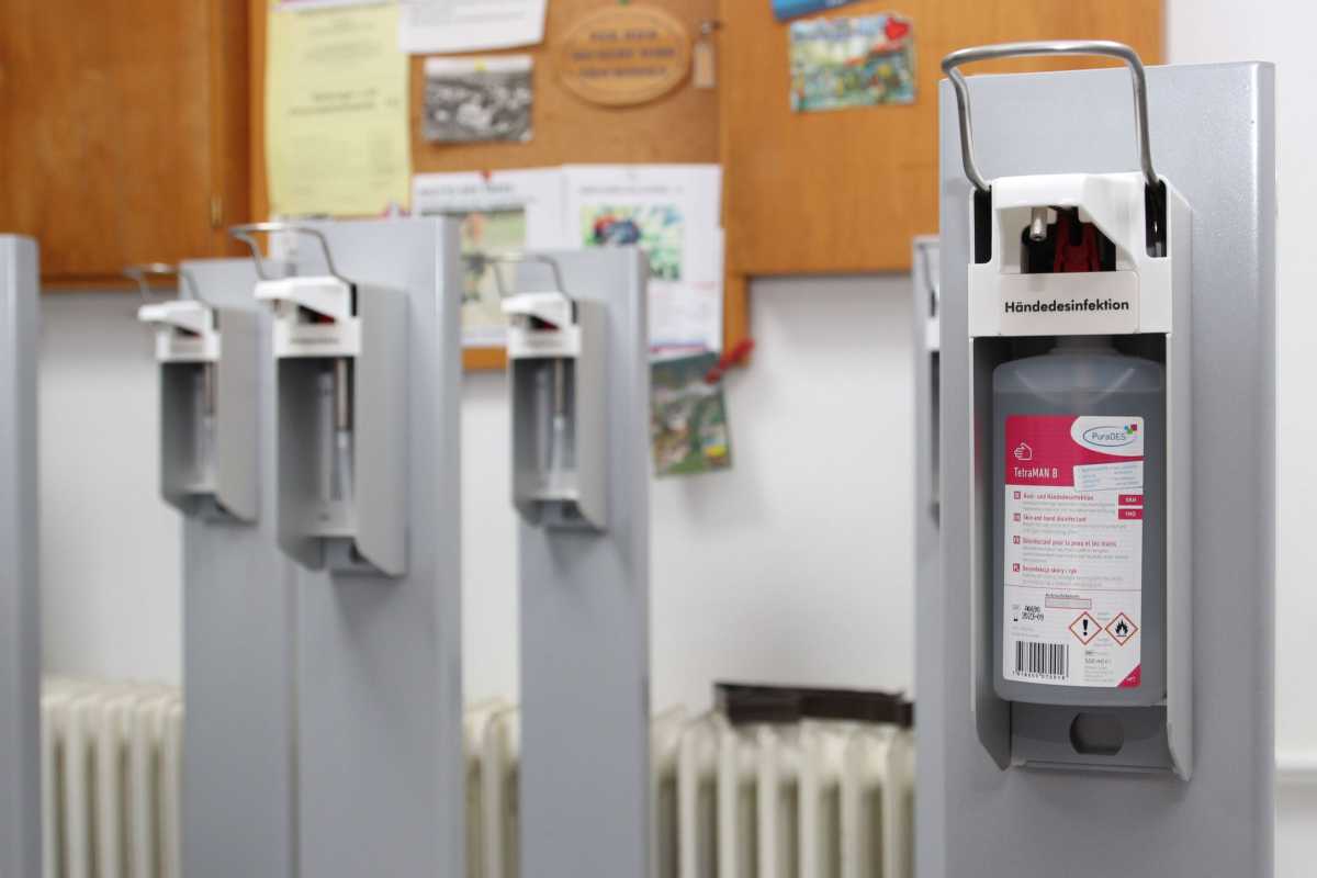 An den Eingängen der Schulgebäude wurden Hygienestationen aufgestellt, an denen sich alle beim Betreten die Hände desinfizieren müssen. Auch für die regelmäßige Belüftung der Räumlichkeiten, die Nutzung der Toilettenräume und der Pausenhöfe gibt es ausgefeilte Pläne, die hier nachzulesen sind.