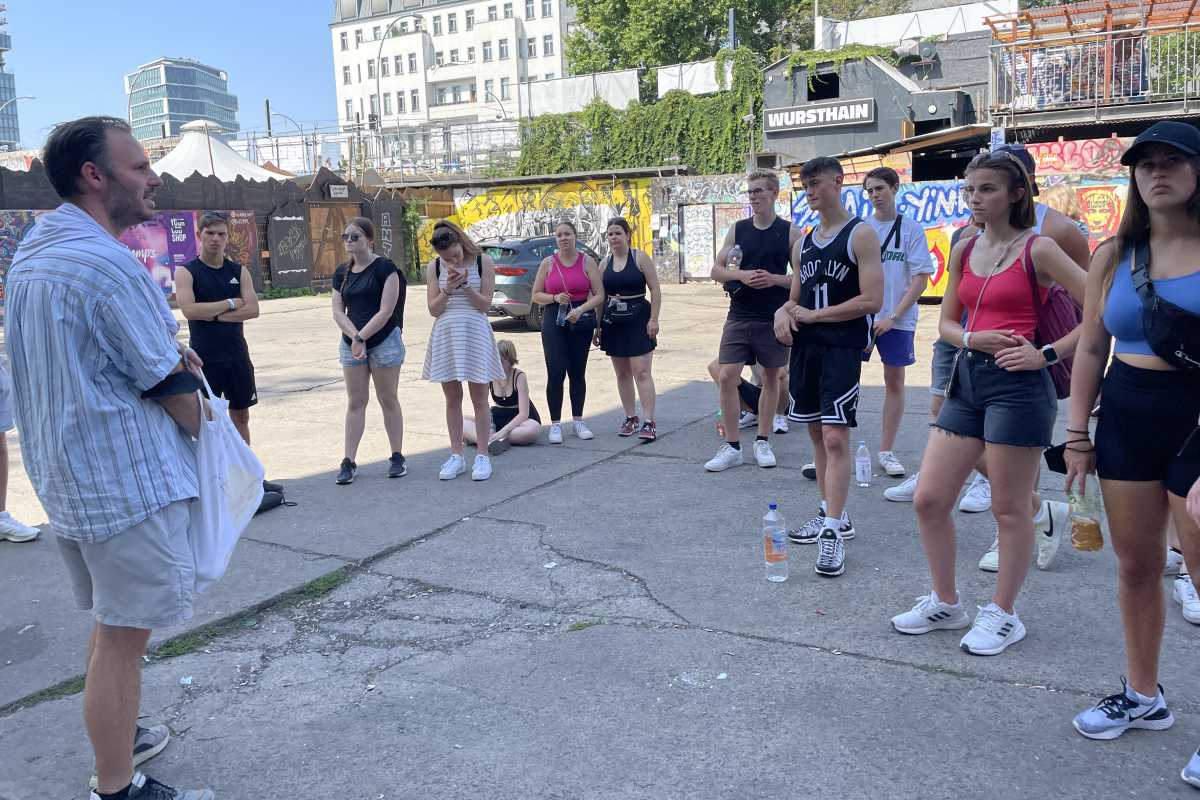 Eine weitere Gruppe von uns nahm an einer Fahrradtour durch Kreuzberg, einen Stadtteil von Berlin, teil. Der Guide erzählte von den Anfängen der Stadt, der Entwicklung der Berliner Mauer und zeigte uns die soziale Ungleichheit auf. Als ein Schüler von einer Wespe gestochen wurde, hat sich Sr. Pusch darum gekümmert. In dieser kurzen Zeit wurde ihr Fahrrad geklaut, womit niemand gerechnet hatte. Dieses ist dann auch leider nicht mehr aufgetaucht (aber das Wohl der Schüler geht natürlich vor J).