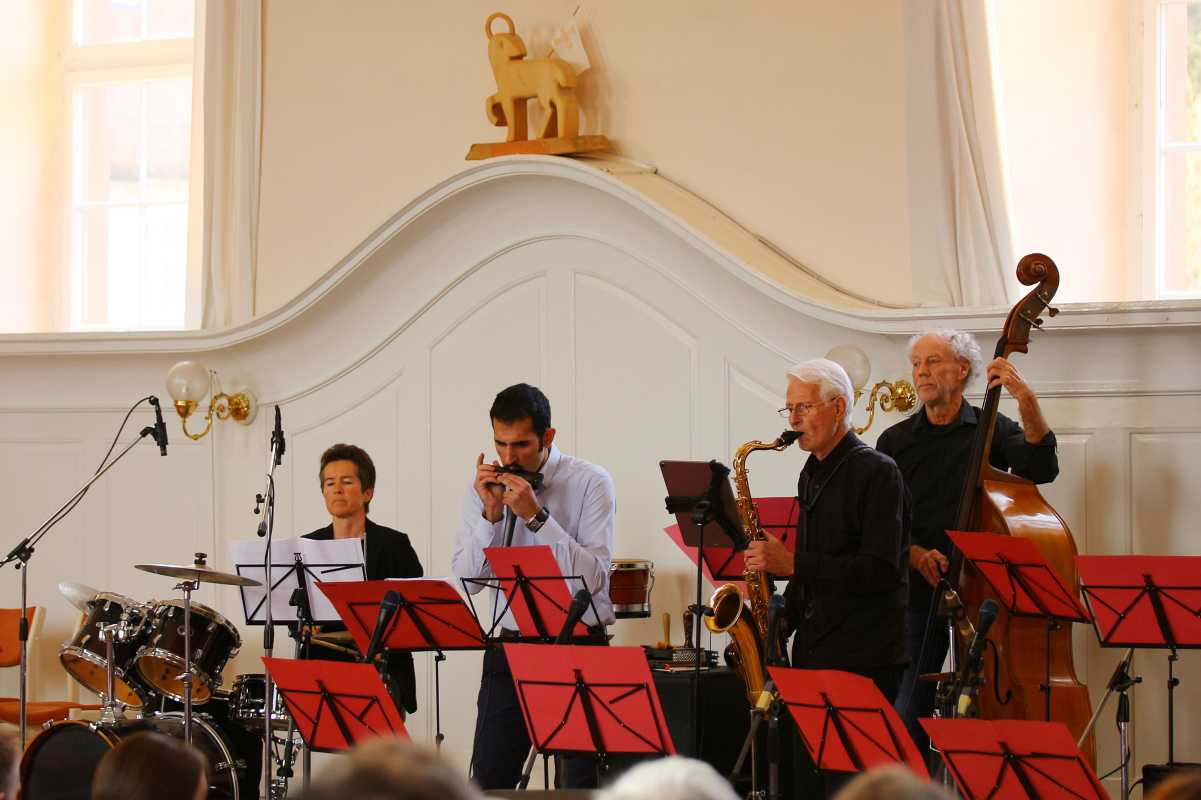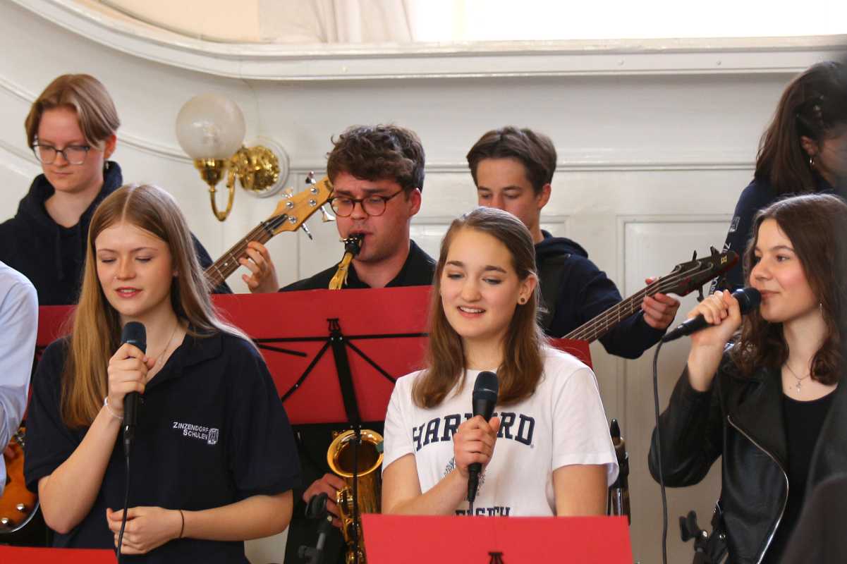 Anschließend brachte die Zinzendorf Jazz-Combo den Saal mit ihrem schwungvollen Set zum Swingen. Auch hier glänzten die Musiker mit virtuosen Soli, während Demira Seubel mit ihrer kraftvollen Stimme das Publikum begeisterte.