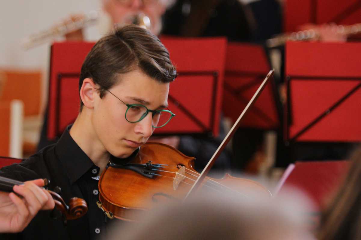 Ein idealer Moment der Sammlung für das Publikum, bevor das Schulorchester mit dem „Dirty-Dancing“-Klassiker „Time of My Life“, dem irischen „Lord of the Dance“ und Jaques Offenbachs „Can-Can“ noch einmal die Menschen beinahe von den Bänken holte. Den krönenden Abschluss bildete der feierliche „Kaiserwalzer“ von Johann Strauss, bei dem alle Mitwirkenden gemeinsam auf die Bühne traten. Mit dieser eindrucksvollen Darbietung wurden die Zuhörer beschwingt in den milden Frühlingsabend entlassen.