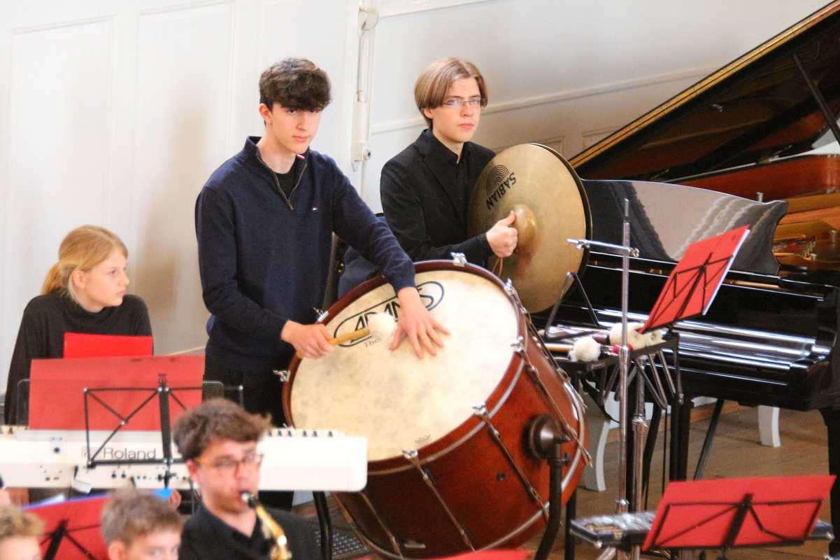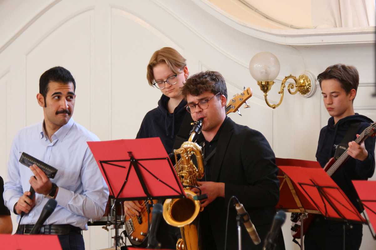 Bereits die jüngsten Musiker sorgten mit dem lebhaften „Cha-Cha Cubano“, Smetanas „Bauernhochzeit“ und dem mexikanischen Hochzeitslied „La Bamba“ für ausgelassene Stimmung. Anschließend übernahm die Jazz- und Popband die Bühne und schuf mit dem sehnsuchtsvollen „Bésame Mucho“ eine atmosphärische Brücke zur energiegeladenen Interpretation von „Get Funky“.