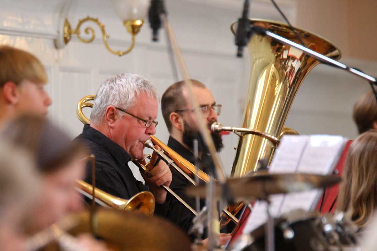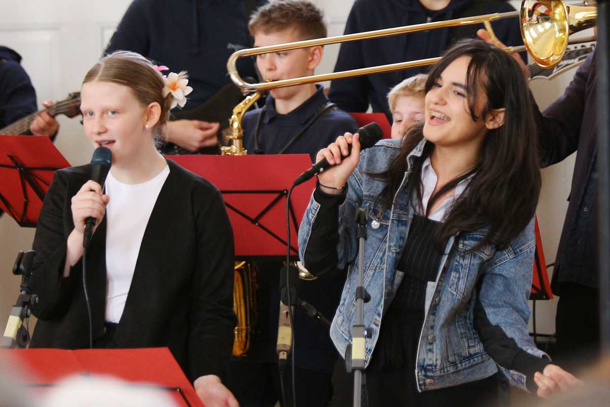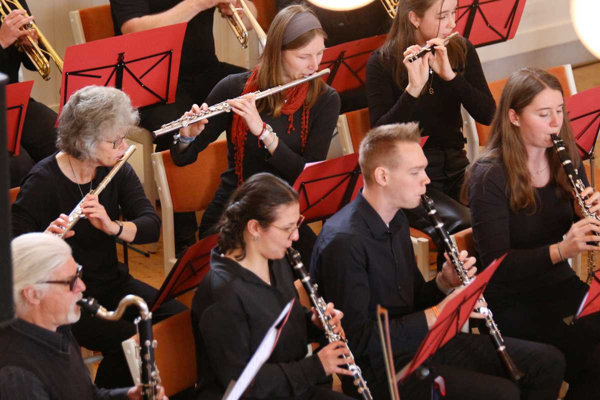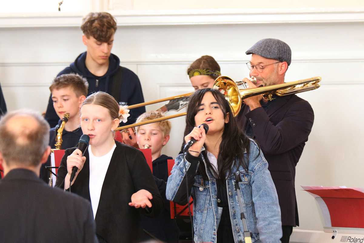 Den Höhepunkt bildete schließlich die mitreißende Darbietung des australischen Chartbreakers „Dance Monkey“, die das Publikum im vollbesetzten Kirchensaal beinahe von den Bänken riss. Die Sängerinnen Elisa Peixoto Cordeiro, Anna Demiriz, Pia Fraas, Anica Lemcke und Lia Richter standen zwar im Rampenlicht, doch der stimmige, volle Sound der 13 Instrumentalisten mit beeindruckenden Solo-Einlagen von Pouyan Peymanifard (Mundharmonika) und Jan Fehrenbach (Altsaxophon) verlieh dem Auftritt zusätzliche Strahlkraft.
