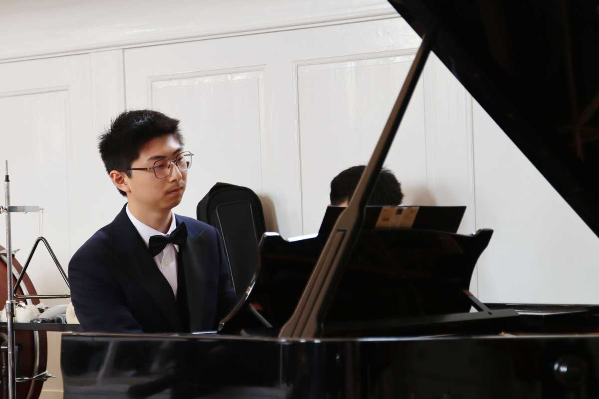 Nach diesen temperamentvollen Darbietungen schuf das präzise und gefühlvolle Klavierspiel des Internatsschülers Minkai Wei, einem Schüler von Bernadette Grässlin, einen Moment der Stille. Während zuvor die Musik noch in den Bauch fuhr und bis in Finger und Fußspitzen strömte, erreichte sie nun die Seele und beflügelte den Geist.