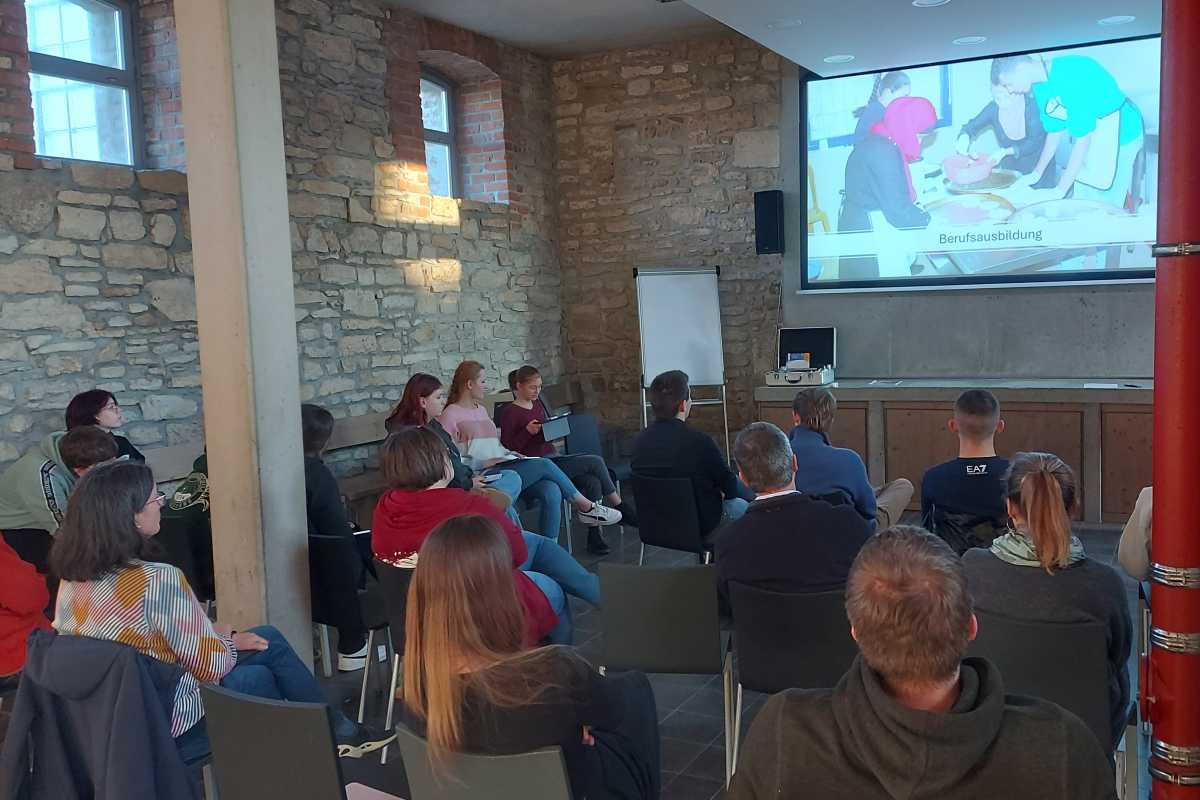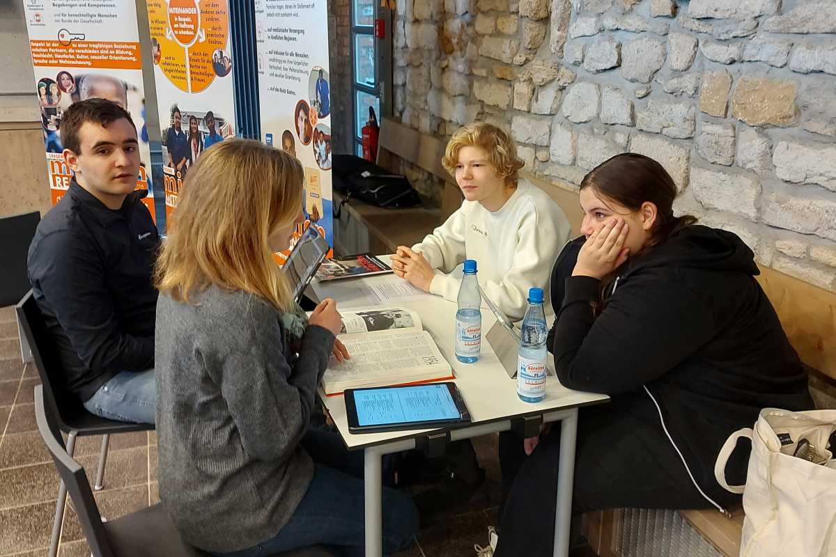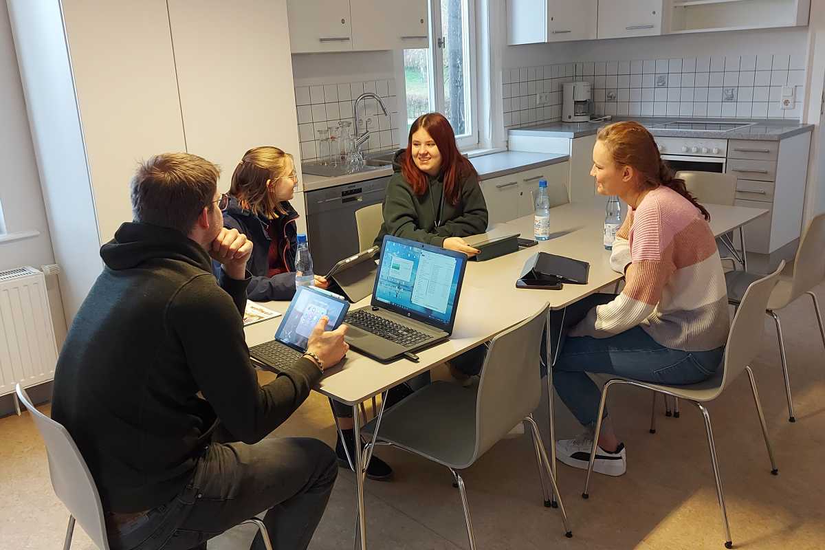 Neben den Inhalten kam auch der Austausch mit anderen Schülerinnen und Schülern sowie das Ambiente des Klosters Volkenroda gut an. „Die Schüler*innen von den anderen Schulen waren sehr engagiert und die Gruppenarbeiten waren sehr interessant“, meinten Lina und Anna-Lena. „Auch in unserer Freizeit haben wir viel gemacht.Das Klostergelände war sehr weitläufig und die Tiere haben uns sehr gefallen. Wir haben sie oft besucht und sie auch füttern dürfen.“