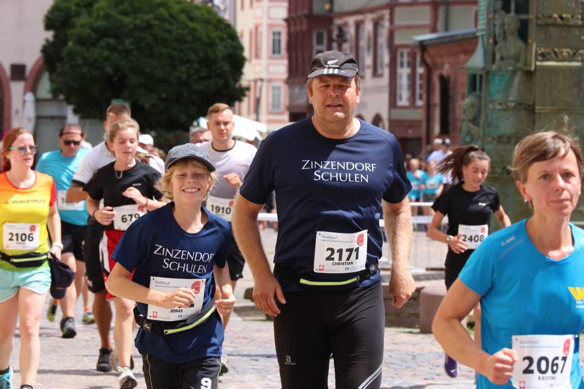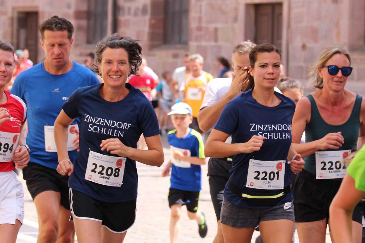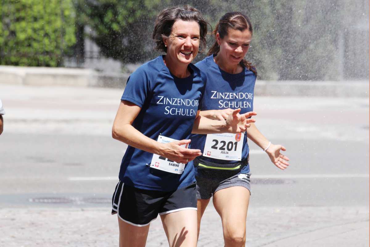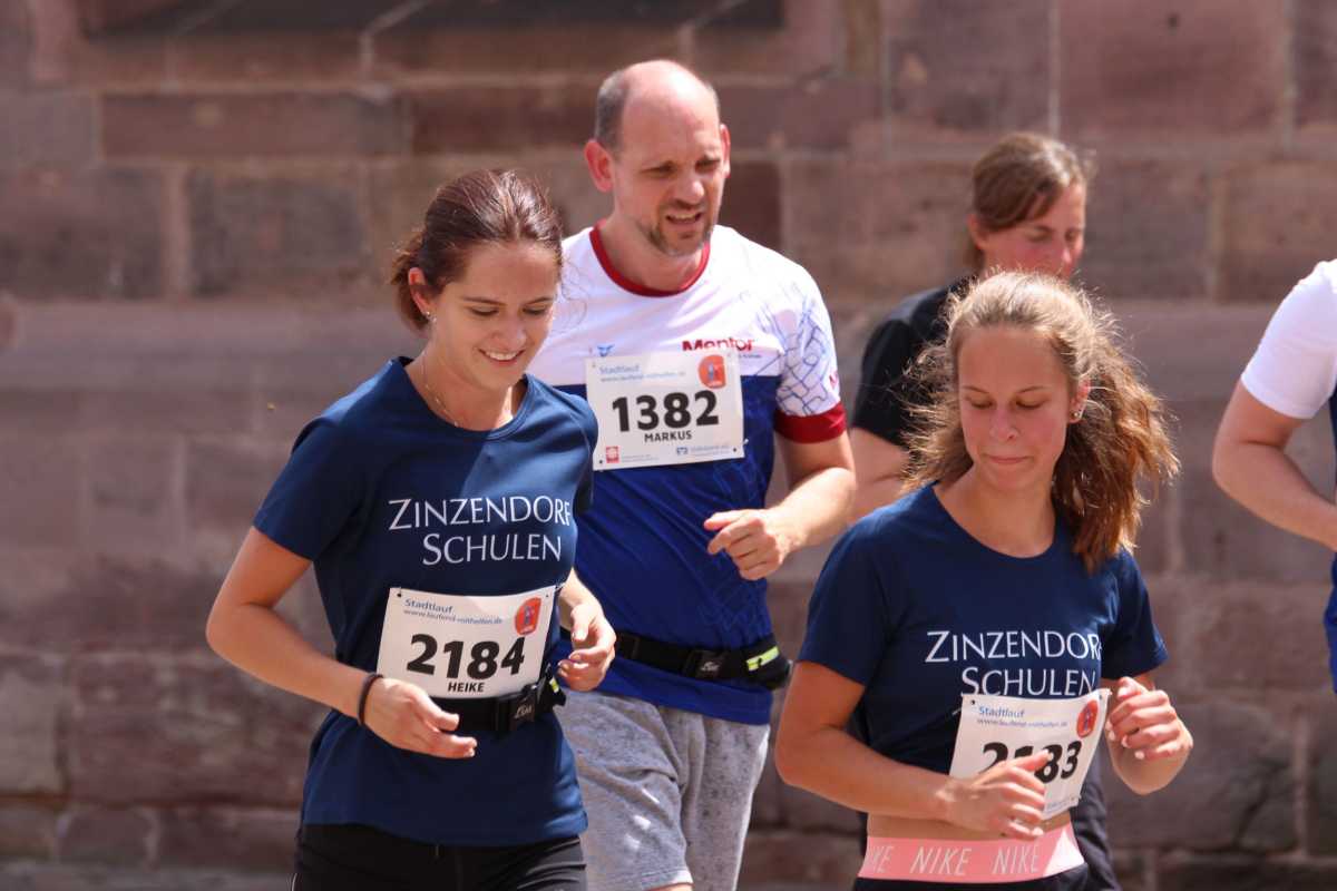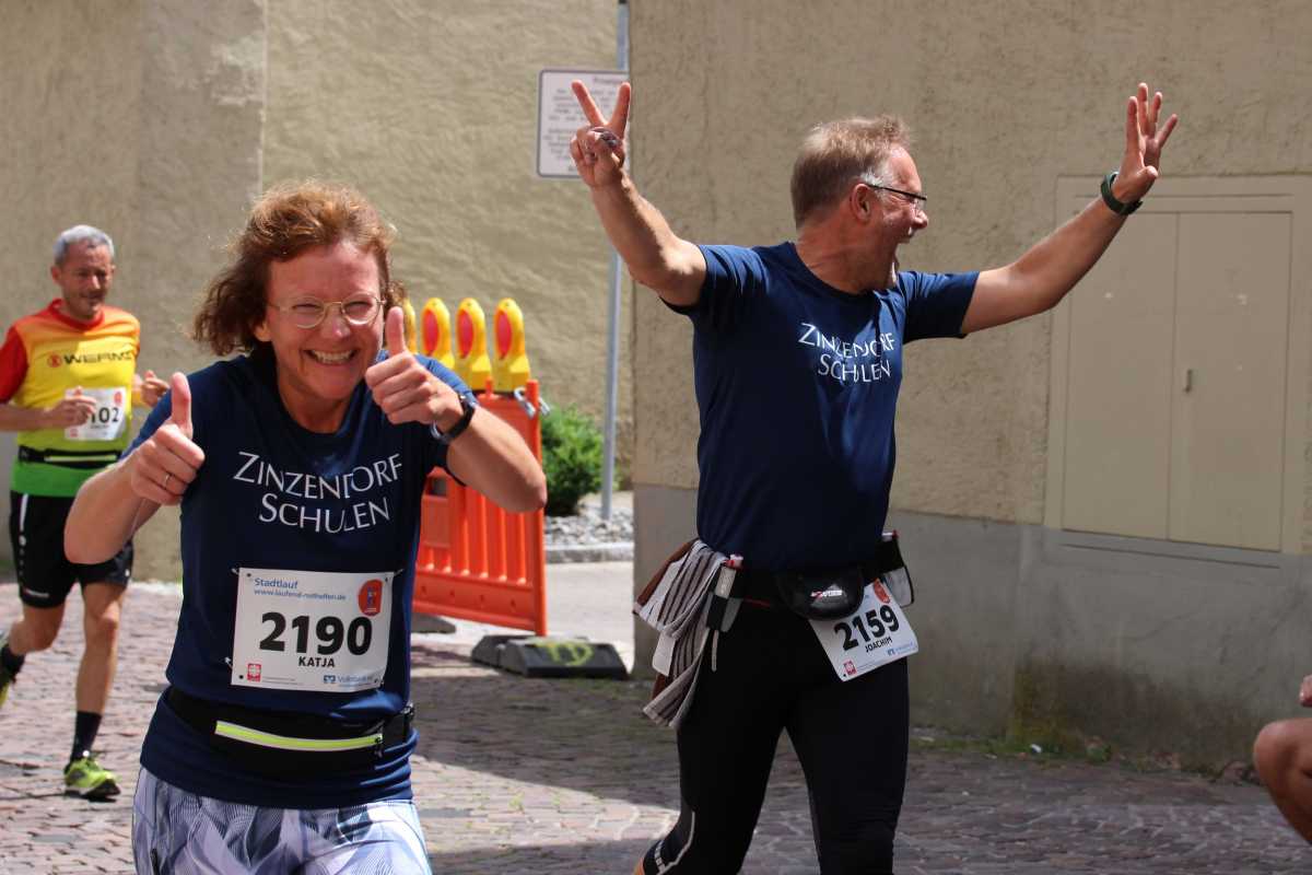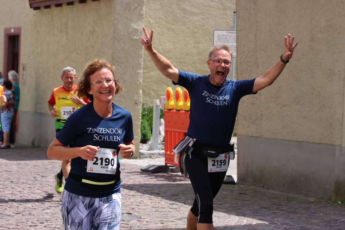 Beim 14. Villinger Stadtlauf zugunsten sozialer Projekte waren auch rund 90 Schülerinnen und Schüler, Geschwister, Eltern, Lehrer und nichtpädagogische Mitarbeiter der Zinzendorfschulen am Start. Gut gelaunt absolvierten sie jeder im Durchschnitt 5,94 Runden. Insgesamt kamen sie auf 565 Runden á 2,2 Kilometer, was einer Strecke von 1243 Kilometern entspricht – also etwa von Königsfeld bis Kopenhagen. Mit dieser Leistung kam das Team auf einen guten Platz 28 von 68 Teams.