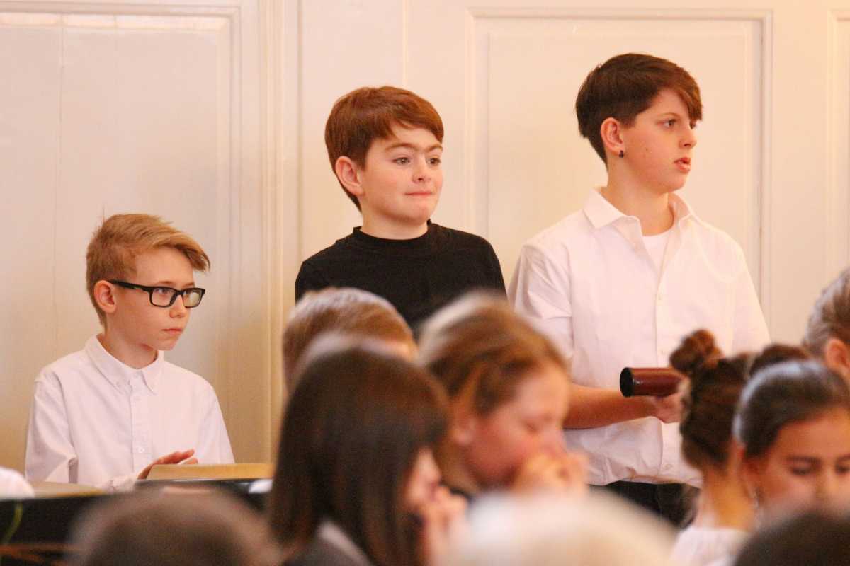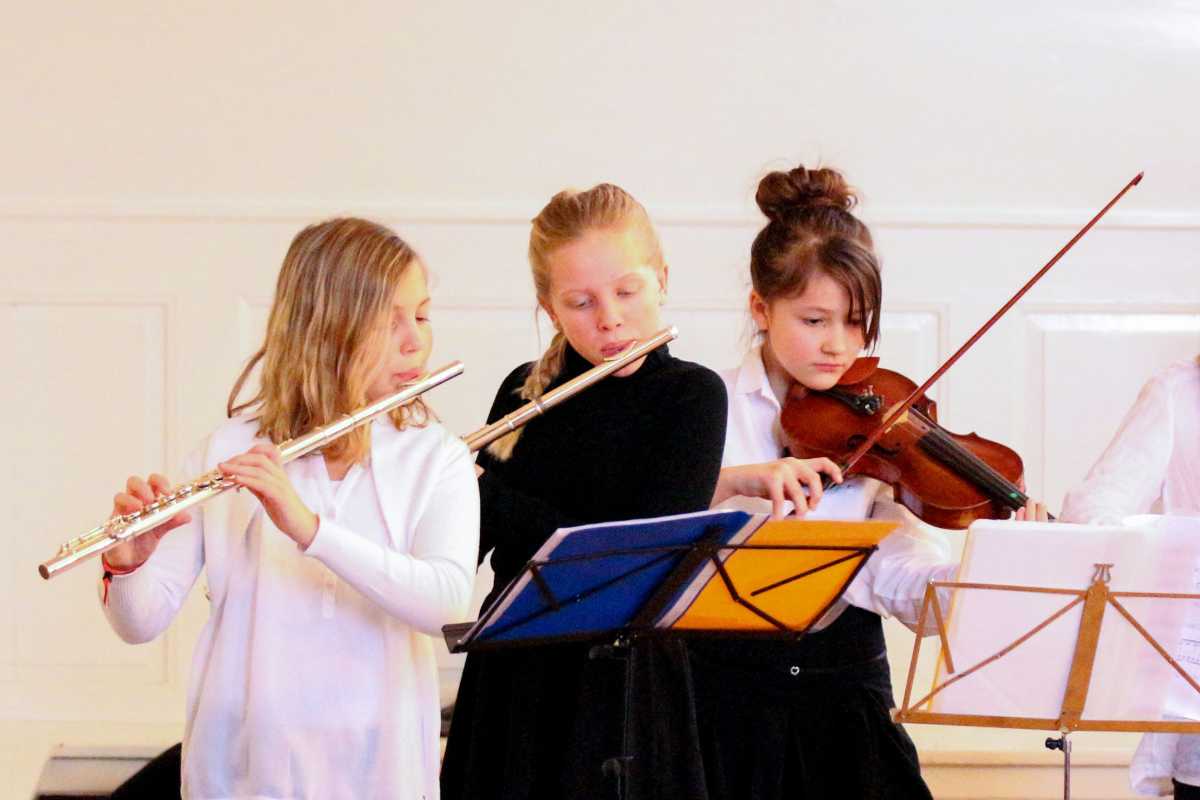 Die intensive Zeit der Proben in den letzten Tagen vor dem Schulkonzert hatte sich wieder einmal gelohnt: Die rund 80 Schülerinnen und Schüler, Altschüler, Eltern, Mitarbeitende und Freunde des Schulwerks ließen ihr Publikum für eineinhalb Stunden das graue Spätwinterwetter vor den Türen des Kirchensaals vergessen und überraschten ihr Publikum mit einem breiten Spektrum an Stücken aus vielen Jahrhunderten. Vom ersten bis zum letzten Ton war das Konzert unter der Leitung von Br. Ziegler von einer Spielfreude geprägt, die genau die richtige Mischung aus konzentrierter Präzision und Leichtigkeit ermöglichte.