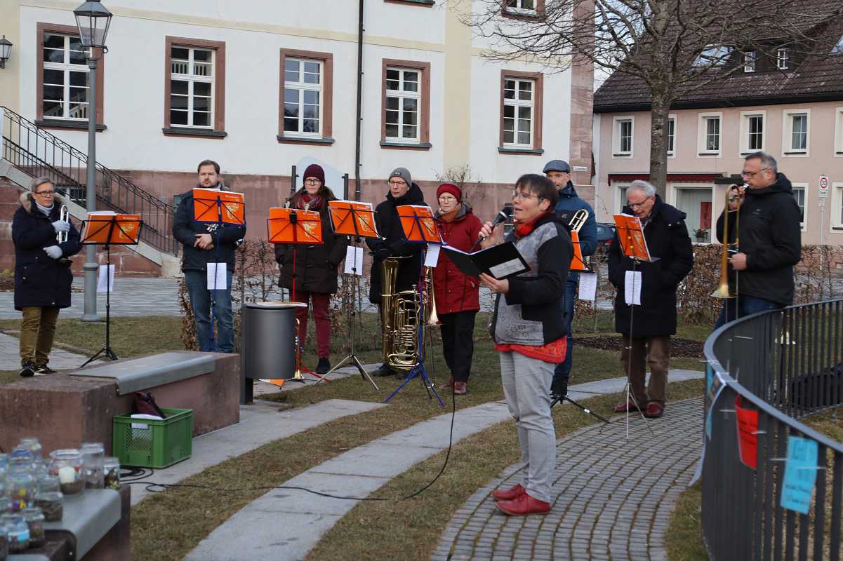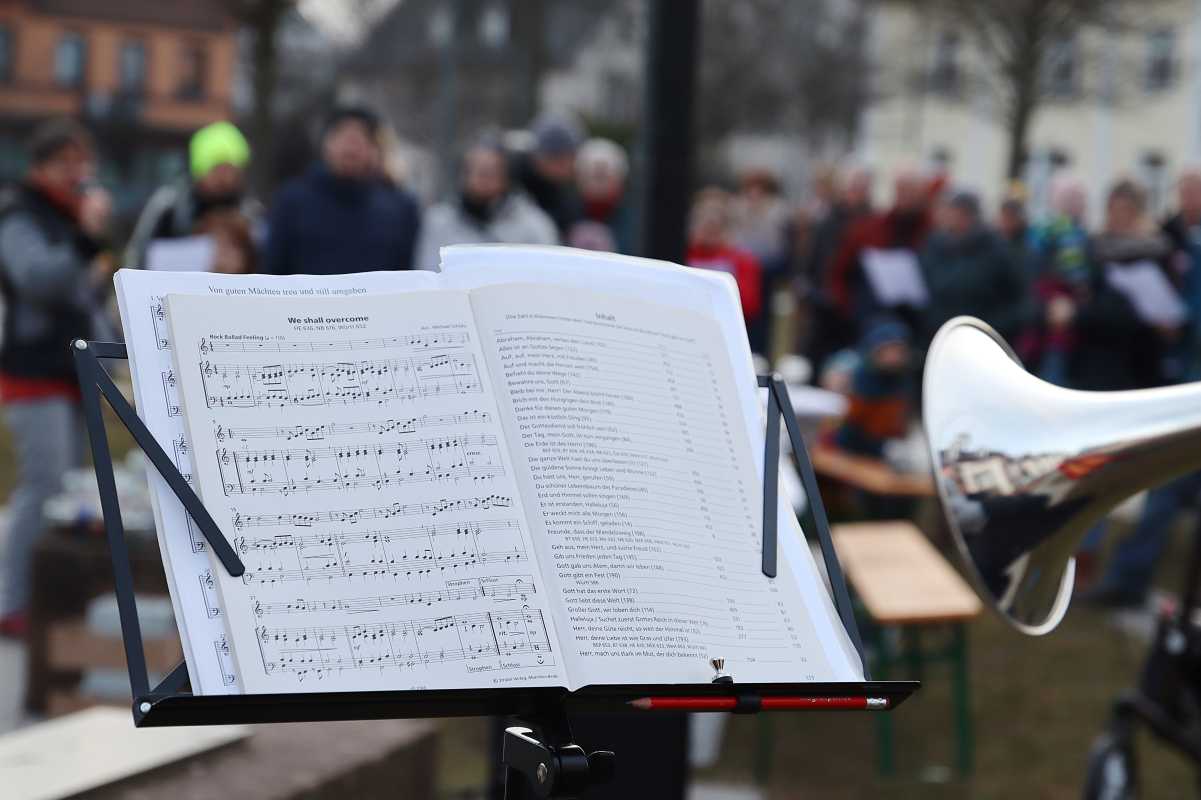 Zuvor hatte sich die Schulpfarrerin der Zinzendorfschulen, Elisabeth Kodweiß mit den Worten „Wir stehen hier und machen ein Licht an, wie lassen uns von der Dunkelheit nicht überwältigen“ an die Demonstrierenden gewandt. „In einer Zeit, in der Hetze, Vorurteile, Pauschalisierungen und Spaltung die Schlagzeilen beherrschen, entsteht schnell der Eindruck, als verschwände das Gute im Schatten. Aber wir sagen heute: Wie machen ein Licht an! Wir erheben unsere Stimmen und machen mit unseren Kerzengläsern sichtbar: Wir wollen eine Gesellschaft, in der jeder Mensch – unabhängig von Herkunft, Religion oder sozialem Status- in seiner Würde geachtet wird.“