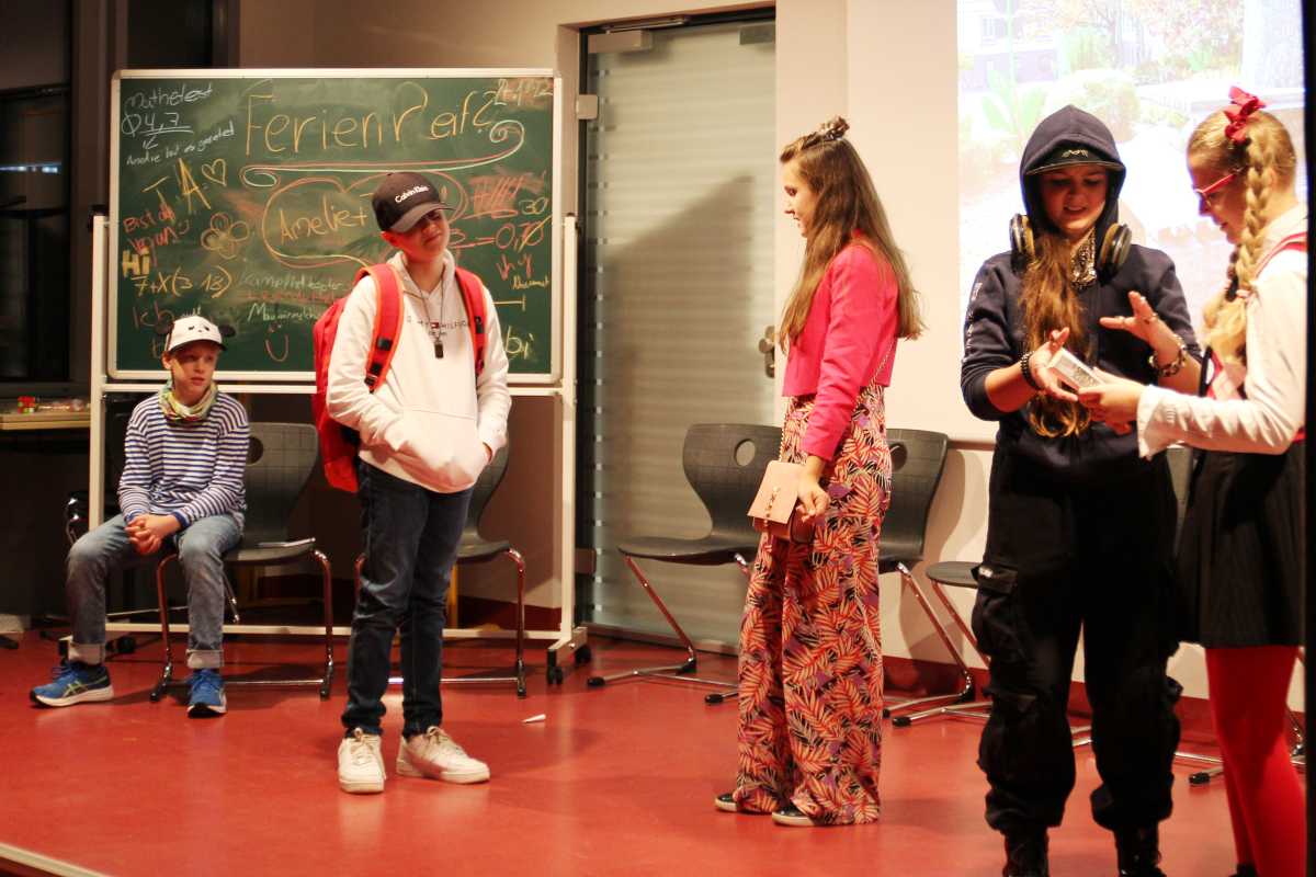 In einer Schulgemeinschaft kommen die unterschiedlichsten Charaktere zusammen: Da gibt es Streber und Klassenclowns, Markenjunkies und Mauerblümchen, Everybody’s Darling und Influencer. Diese unterschiedlichen Typen hat das Unterstufentheater in dem kleinen szenischen Stück „Ferienreif“ augenzwinkernd zugespitzt und auf der Bühne inszeniert.