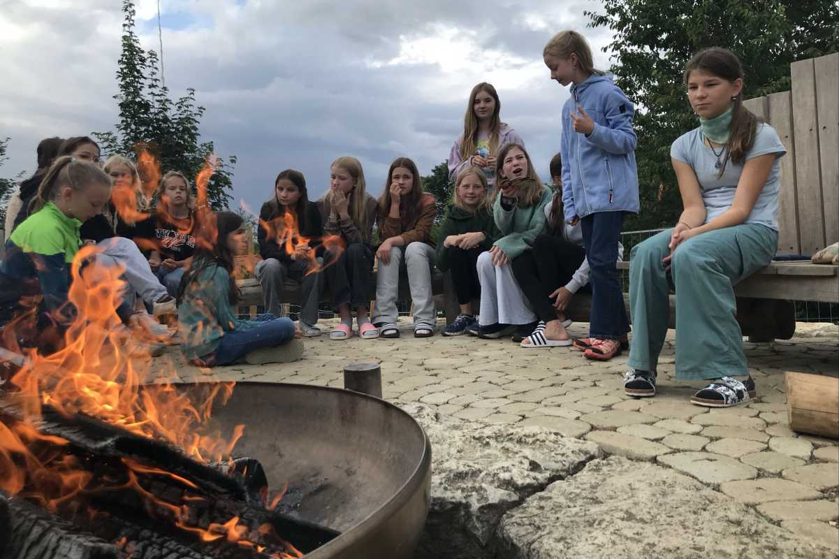 Später am Lagerfeuer genossen die Kinder Stockbrot und ließen den Tag mit Spielen und Gesprächen unter freiem Himmel ausklingen.