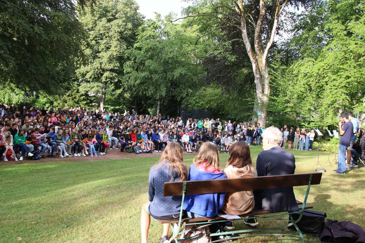 Mit einem Gottesdienst im Garten des Erdmuth-Dorotheen-Hauses wurden alle Schülerinnen und Schüler in die Sommerferien verabschiedet – natürlich nicht, ohne noch einmal die vergangenen Tage Revue passieren zu lassen. Neben den Lehrerinnen und Lehrern hatten sich auch mehr als 70 Schülerinnen und Schüler der Oberstufe eingebracht, indem sie selbst Projekte betreut hatten. Für diesen ehrenamtlichen Einsatz bekamen sie nicht nur den Dank der Schulleitung, sondern auch Zertifikate, die sich in ihren Bewerbungsmappen sicherlich positiv bemerkbar machen werden.
