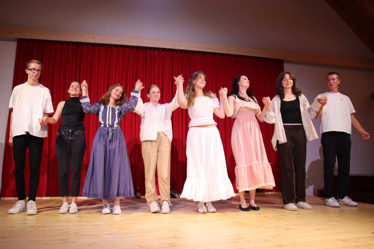 Es zwitschert. Die leisen Töne aus den Lautsprechern bereiten das Publikum in der Waldkulturscheune schon auf die kommende Darbietung vor, noch ehe sich der nicht vorhandene Vorhang hebt. Der Literatur- und Theaterkurs (LuT) der Zinzendorfschulen hat sich in zwei Ensembles aufgeteilt und mit einer Werkschau öffentlich gezeigt, was sie sich vorab in der Theorie und seit Beginn dieses Schulhalbjahres auch in der Praxis erarbeitet hatten.