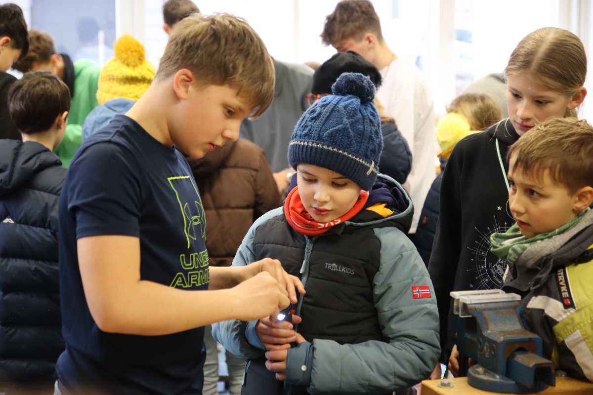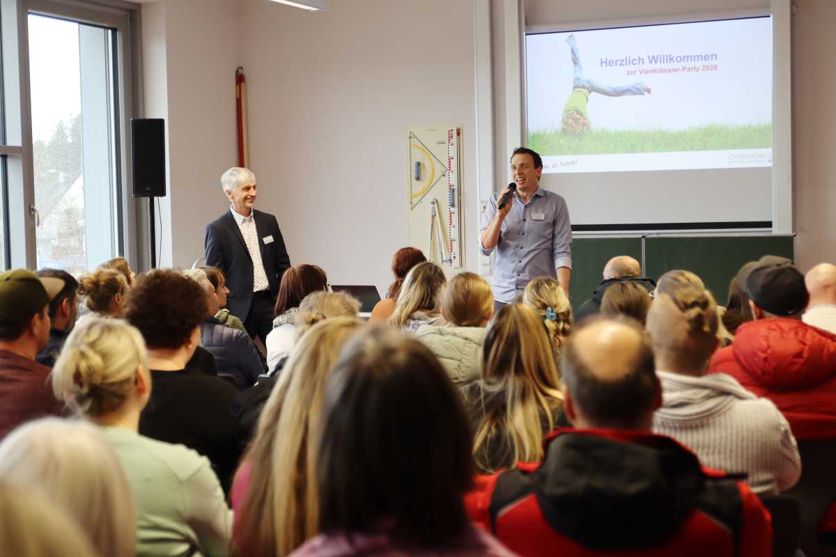 Während die Eltern sich über Unterstützungsangebote, die Ganztagsbetreuung im Lerncampus, die schulzweigübergreifende Gemeinschaft und die geplante neue Sporthalle informierten, erkundeten die Viertklässler mit der SMV das Gelände. Sie staunten über Chemie-Experimente, lernten das Kunstatelier kennen und tobten sich beim Spielen aus. Pizza und Donuts sorgten dabei für das leibliche Wohl.