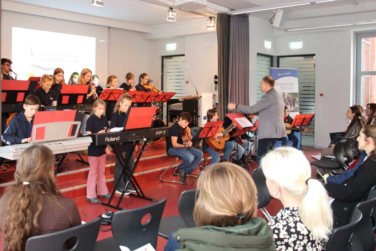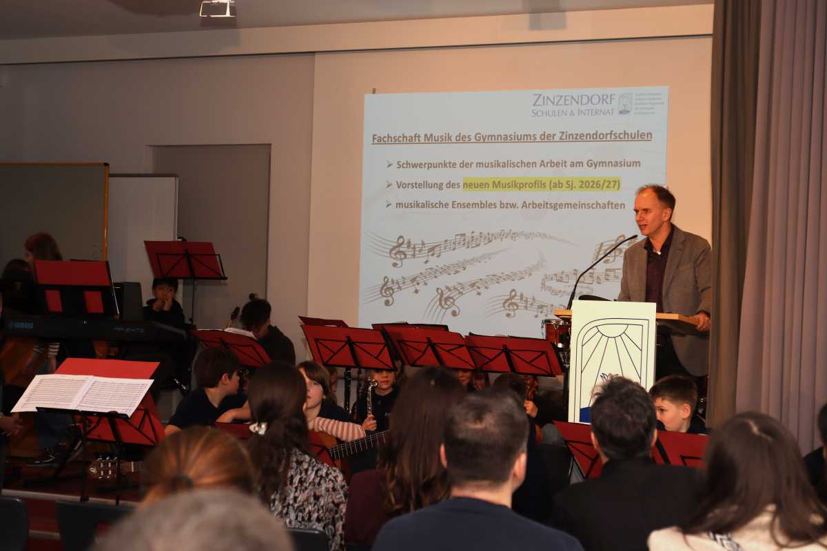 Ein besonderes Augenmerk lag auf den Profilen des Gymnasiums: Neben Spanisch als zweiter Fremdsprache, Naturwissenschaft und Technik (NwT) sowie Kunst und Mediendesign informierte die Schulleitung über das neue Musikprofil ab dem kommenden Schuljahr. Wie sehr Musik und Theater das Selbstbewusstsein stärken, bewiesen neben den Auftritten von Unterstufenorchester und -chor auch eine kurze englische Theatervorführung.