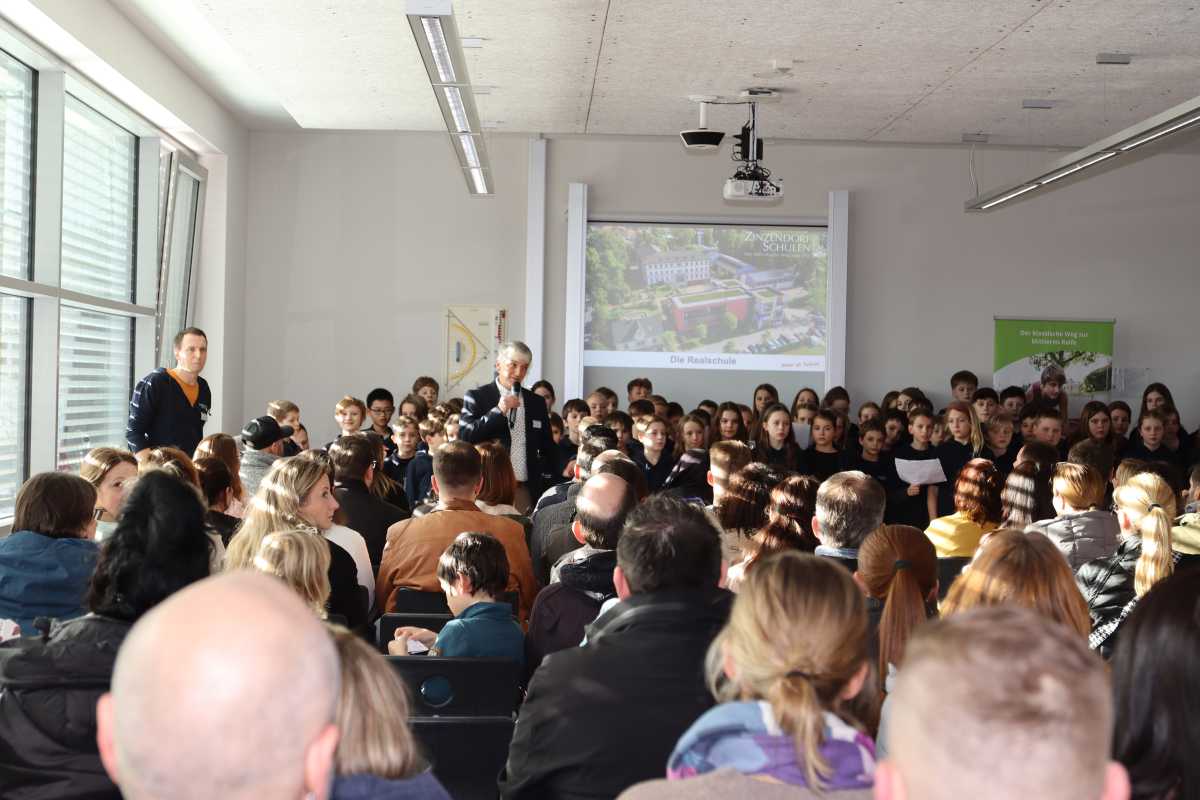 Nach einer kurzen musikalischen Einstimmung durch den Unterstufenchor bzw. das Unterstufenorchester stellen der Leiter der Realschule, Helmut Hertnagel sowie sein Stellvertreter Tobias Frasch diese Schulart und die pädagogische Gesamtleiterin Erdmuthe Terno und die Leiterin des allgemeinbildenden Zinzendorfgymnasiums, Heike Lutz-Marek, den acht- oder neunjährigen Weg zum Abitur vor. In beiden Veranstaltungen gab es jede Menge Informationen für die Eltern, etwa zur Ganztagsbetreuung am Tagesinternat und dem Internat, zur Förderung bei Lese-Rechtschreib-Schwäche, dem musikalischen Angebot und den Elternvertretern. Neben den Besonderheiten der Zinzendorfschulen wie den Kennenlerntagen, selbstorientiertem Lernen sowie Rhetorikunterricht im Gymnasium gab es für die interessierten Eltern auch Kostproben aus Musik und Theater. Neben den Besonderheiten der Zinzendorfschulen wie den Kennenlerntagen, selbstorientiertem Lernen sowie Rhetorikunterricht im Gymnasium gab es für die interessierten Eltern auch Kostproben aus Musik und Theater.