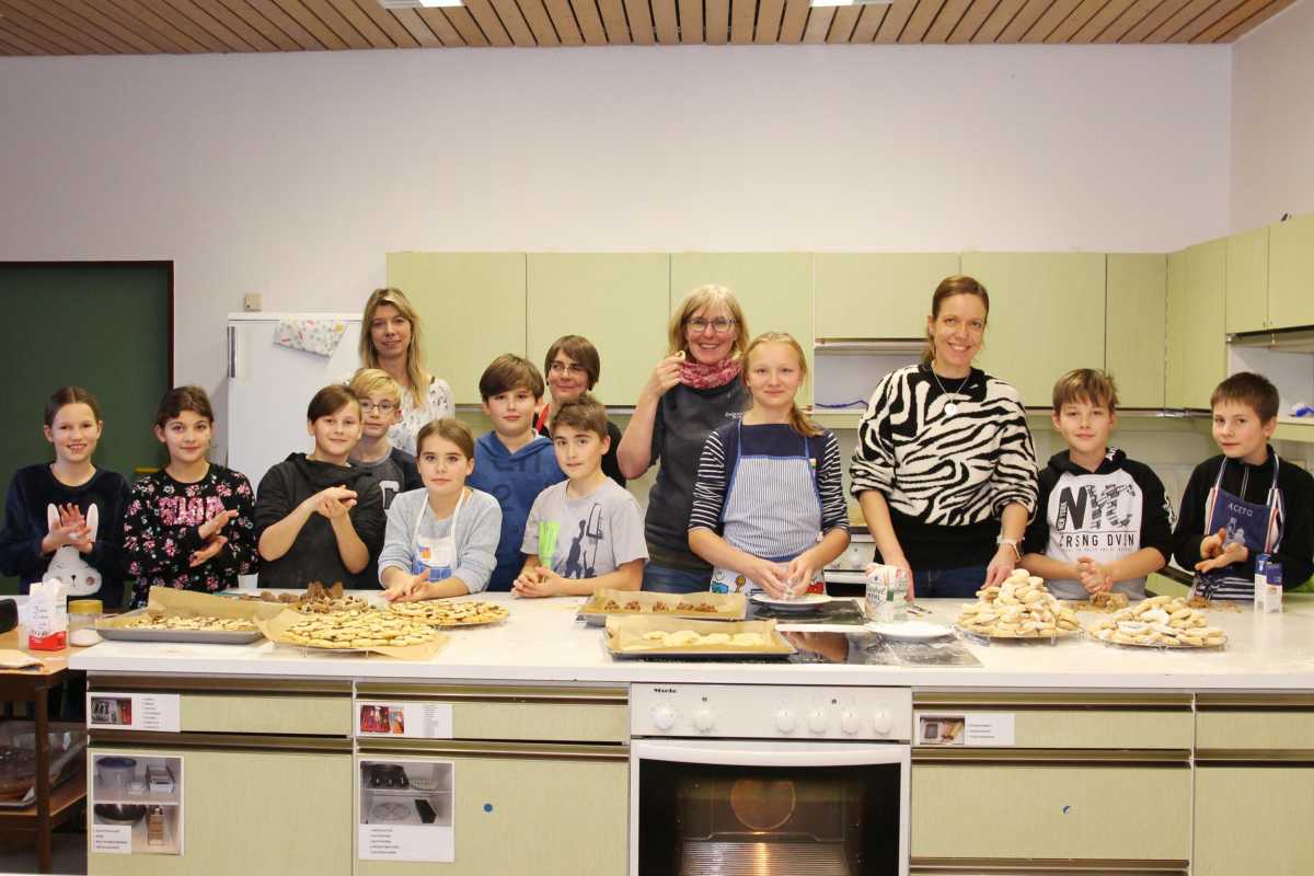 Ganz eifrig bei den Vorbereitungen für den Königsfelder Weihnachtsmarkt ist die fünfte Klasse der Zinzendorf-Realschule: Die Jungen und Mädchen haben einen ganzen Nachmittag lang rund 30 Bleche mit veganen Plätzchen gebacken. Die Vanillekipferl, Champignonkekse und Nussmakronen werden am kommenden Samstag vor dem Stand der Zinzendorfschulen gegen Spenden verkauft.