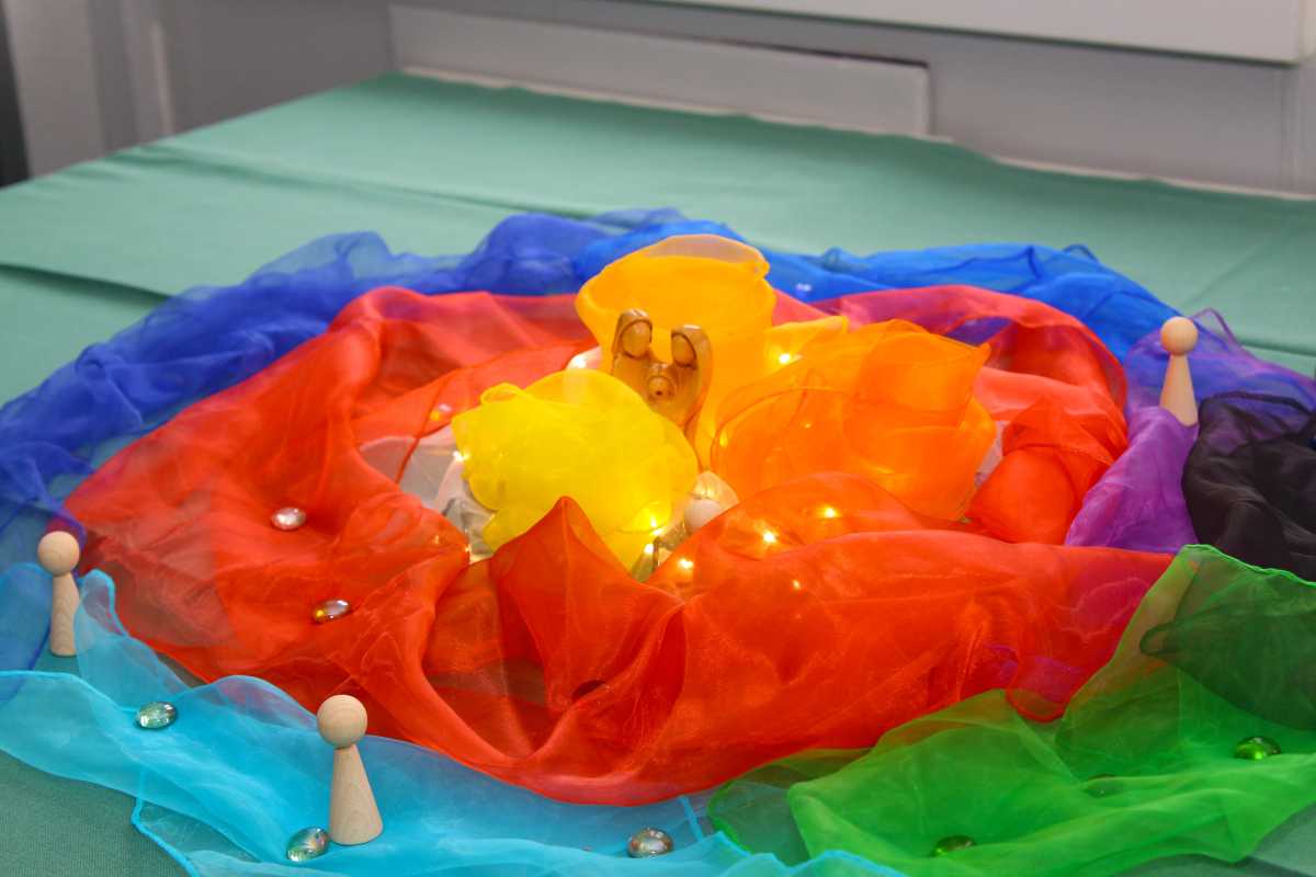 Der Adventsweg, der entweder als Spirale oder fortschreitender Weg – zum Beispiel auf einer Fensterbank – aus verschiedensten Materialien gelegt werden kann, bietet eine Fülle von Ritualen für verschiedene Altersgruppen. Während für Grundschulkinder der Bau des Weges von großem Interesse ist, sind in der Kita eher Geschichten oder Figurentheater angesagt. Bei Jugendlichen können die zwei- und vierbeinigen Krippenbewohner als symbolische Identifikationsfiguren dienen.