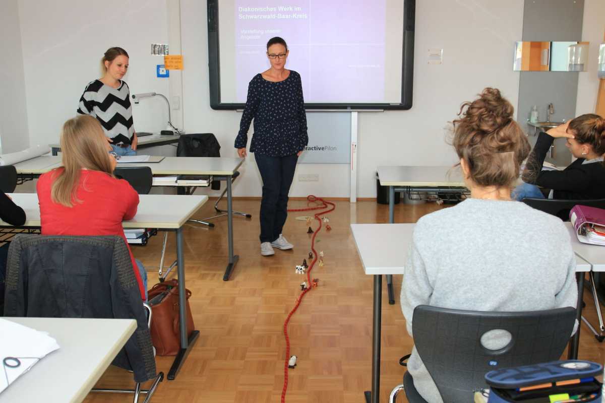 Einen Einblick in ihre Arbeit beim Diakonischen Werk im Schwarzwald-Baar-Kreis verschafften Saskia Wartenberg und Corina Heim den Schülerinnen und Schülern der Klasse SG1b des Sozial- und Gesundheitswissenschaftlichen Gymnasiums (SG). Saskia Wartenberg, die einst selbst am SG der Zinzendorfschulen ihr Abitur abgelegt hatte, arbeitet in der Sozial- und Lebensberatung, zu der unter anderem auch Schuldnerberatung und Mediation gehören, sowie in der Beratung für Schwangere und junge Familien. Ihre Kollegin Corina Heim leitet in den gleichen Bereichen die Außenstelle St. Georgen.