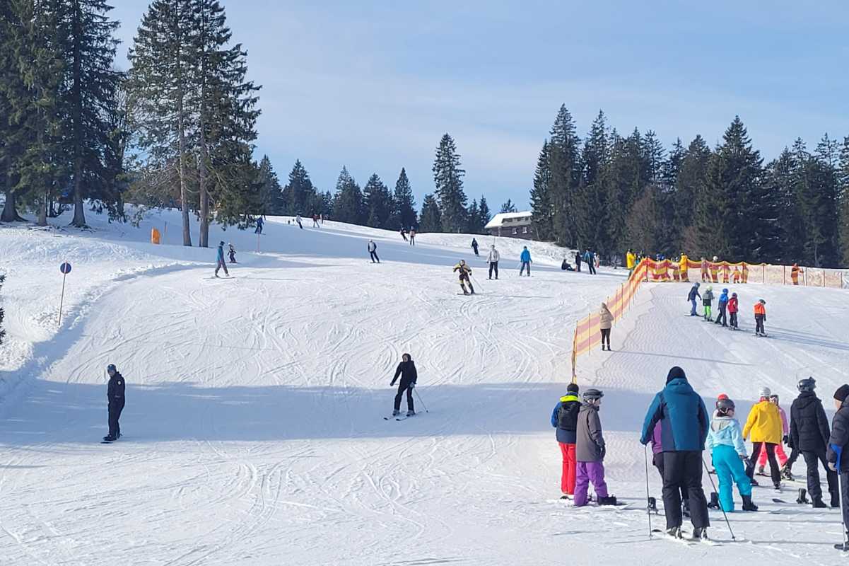 Bevor sich der Frühling deutlich bemerkbar machte, konnten sich die siebten bis neunten Klassen in der vergangenen Woche noch einmal richtig winterlich austoben. Wer sich sicher auf Skiern oder Snowboard bewegen konnte, fuhr auf den Feldberg, für eine weitere Gruppe von rund 130 Schülerinnen und Schülern war die Kunsteisbahn in Schwenningen Ziel des Wintersporttags.