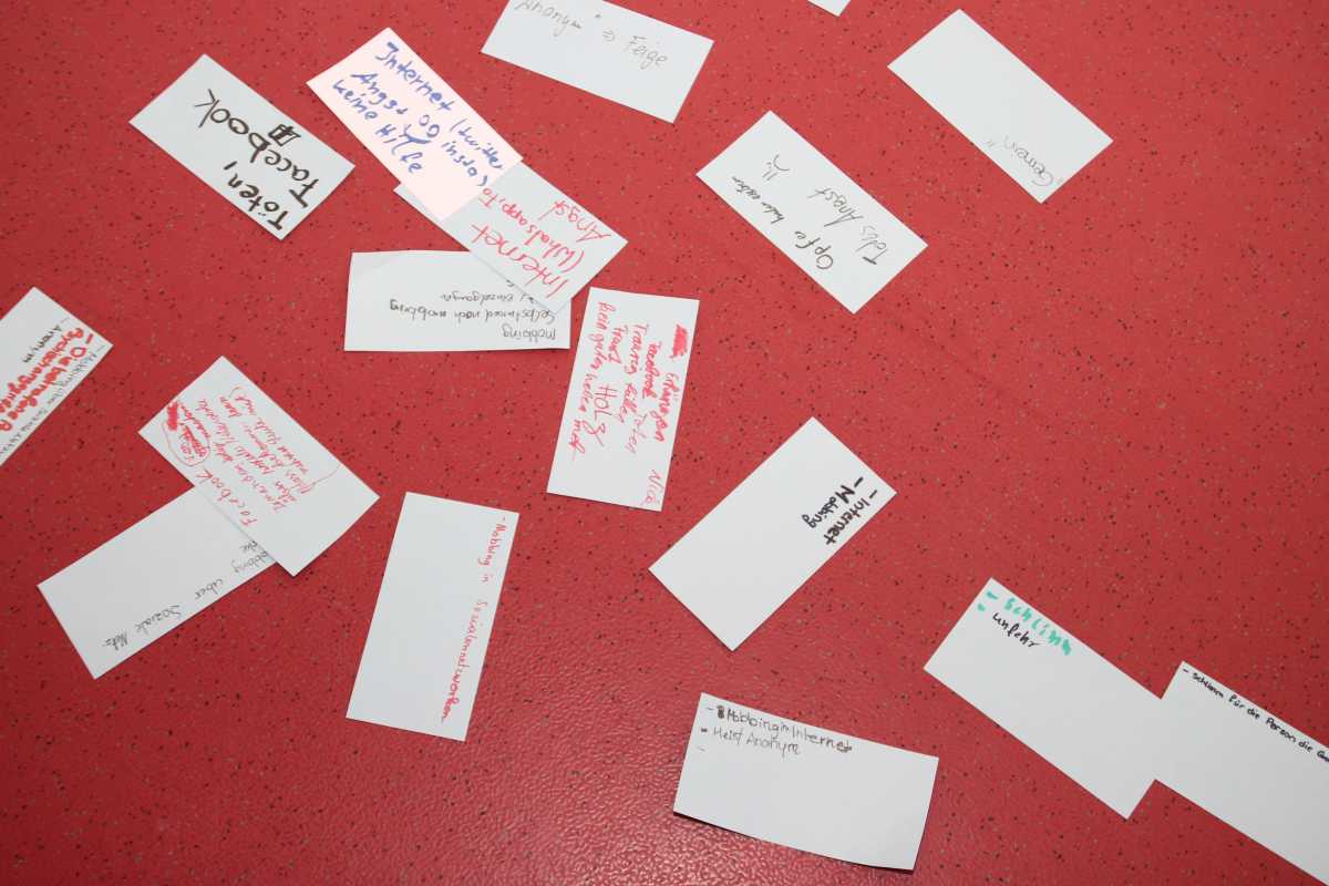 Michael Weiß zeigte auch ein kurzes Video über einen Jungen in England, der über Handy und Internet gemobbt wurde. Gruppenweise analysierten die Zinzendorfschüler die Situation und diskutierten, wie das Opfer die Angriffe schneller hätte beenden können.