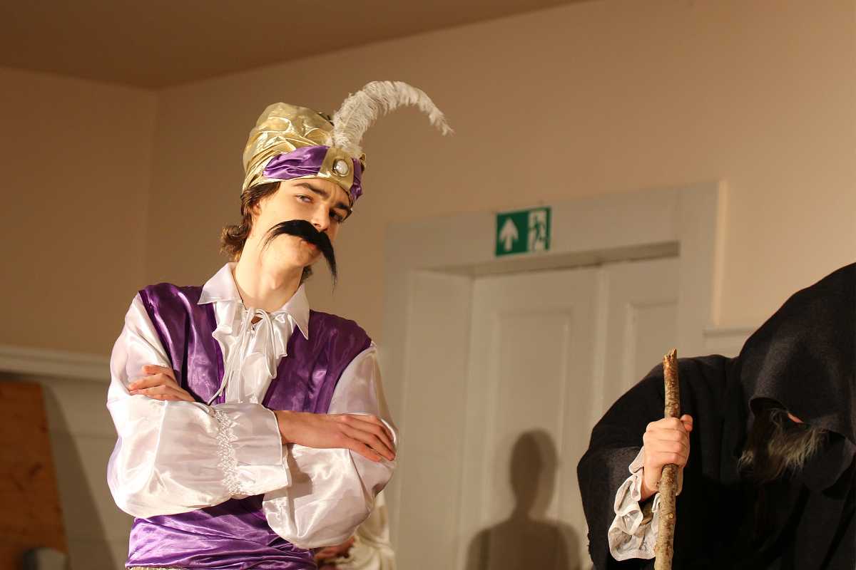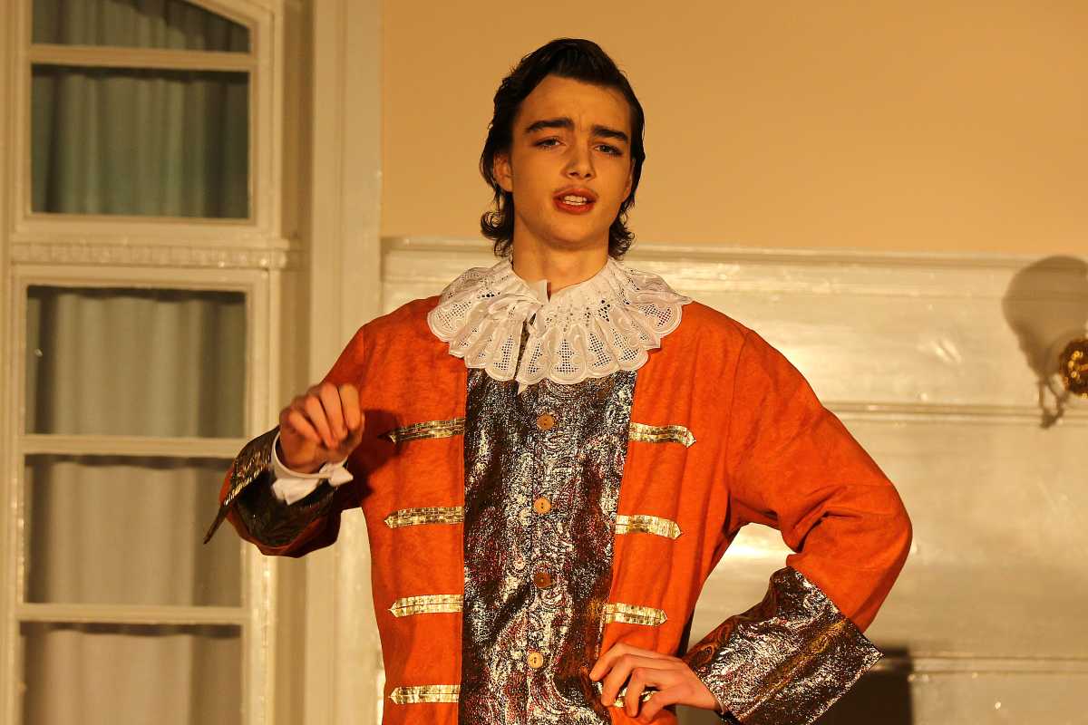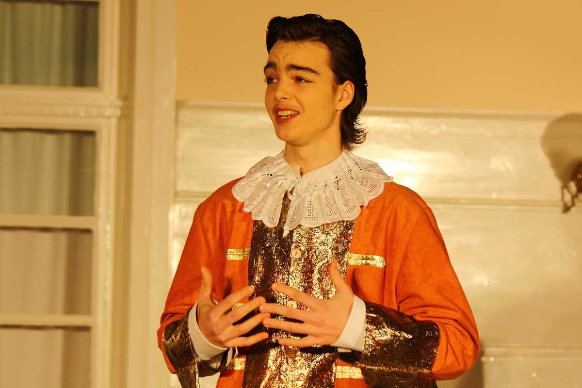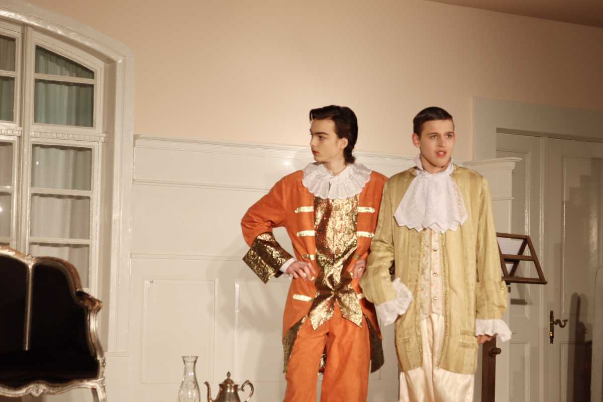 Neben den Lehrer*innen überzeugten auch die Schülerinnen und Schüler in ihren Rollen, sei es als Dienstmagd Nicole (Lisa Marie Schlenker), Jourdains Tochter Lucile oder deren Angebeteter samt seinem Diener Covielle (Finn Hesselbach). Alle zeigten mit ihrer Mimik und winzigen Gesten auch in ihren Sprechpausen beachtliche Bühnenpräsenz.
