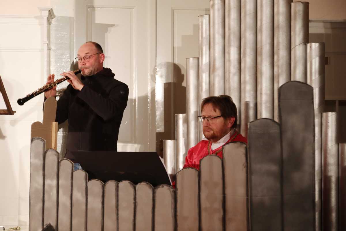 Abgerundet wurde die spektakuläre Inszenierung der ursprünglichen Ballettkomödie, die 1670 uraufgeführt wurde, von Johannes Michel (Orgel), Irena Mohnkorn (Sopran) und Markus Färber (Oboe) , die samt Chor die Komposition von Jean-Baptiste Lully zum Besten gaben.
