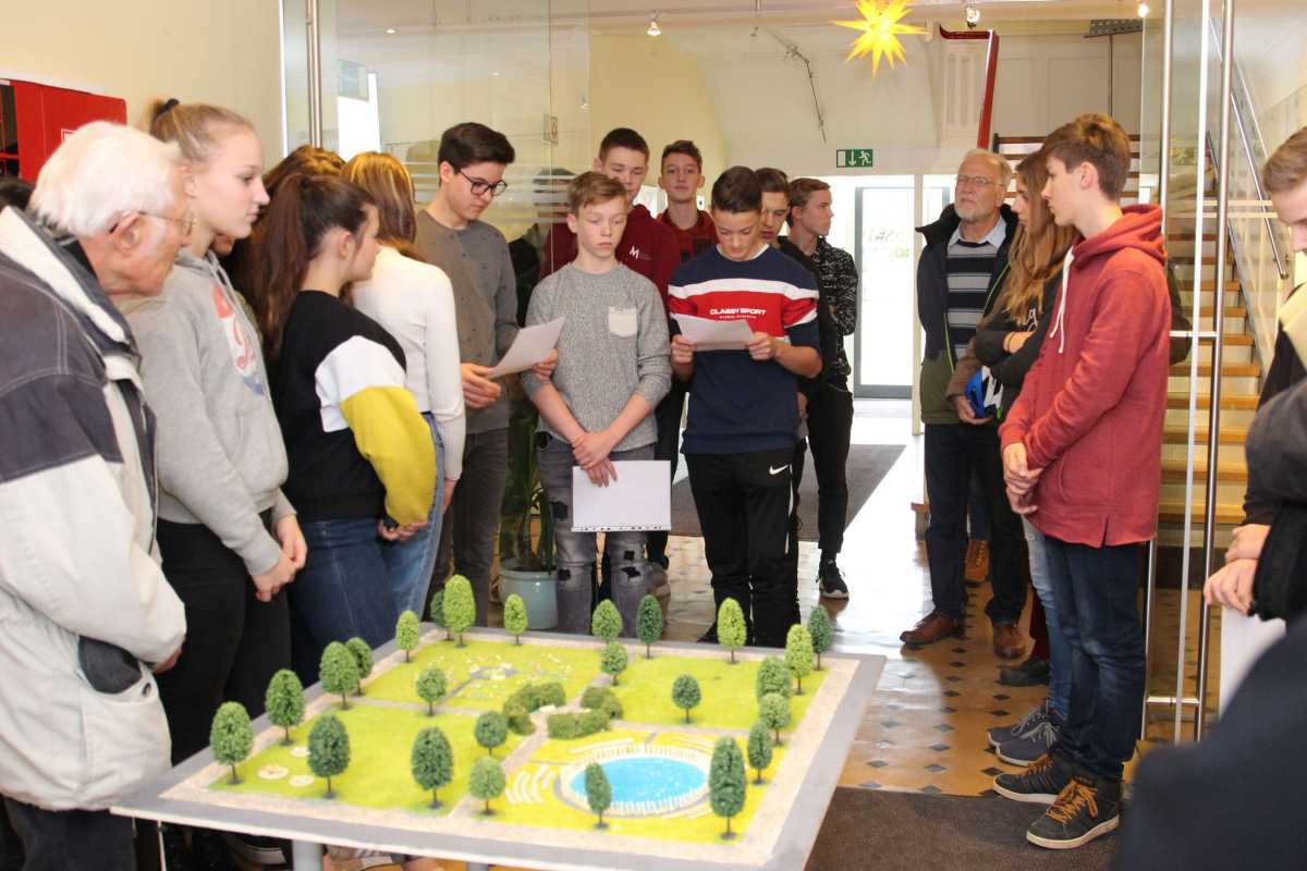 In einer Gruppe entstand auf Grundlage des Bauplanes sogar ein Modell der neuen Platzanlage.„Den Jugendlichen soll durch diese Projektarbeit die Bedeutung und der Wert der einzigartigen Ortsanlage bewusst gemacht werden“, erklärte Schulpfarrer Br. Fischer, der dieses Projekt betreut hat. „Das Schulleben“, sagte er, „findet nicht nur in den Klassenzimmern statt, sondern im ganzen Ort.“