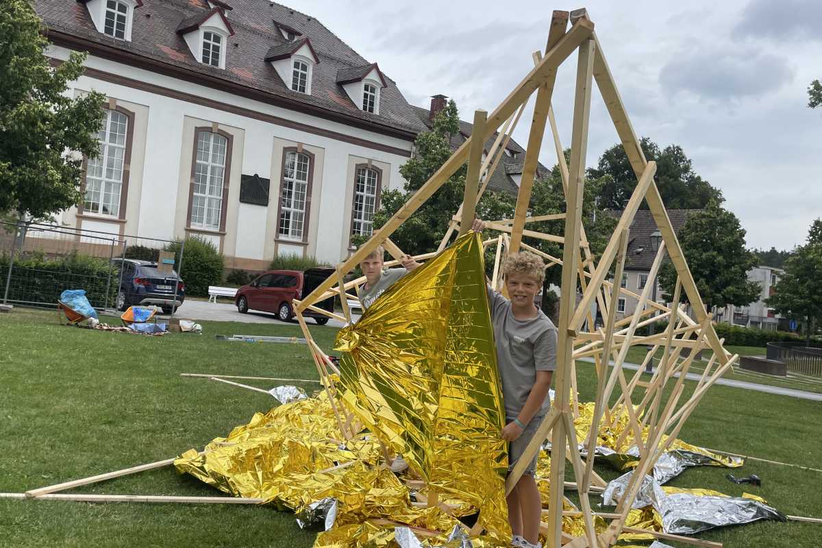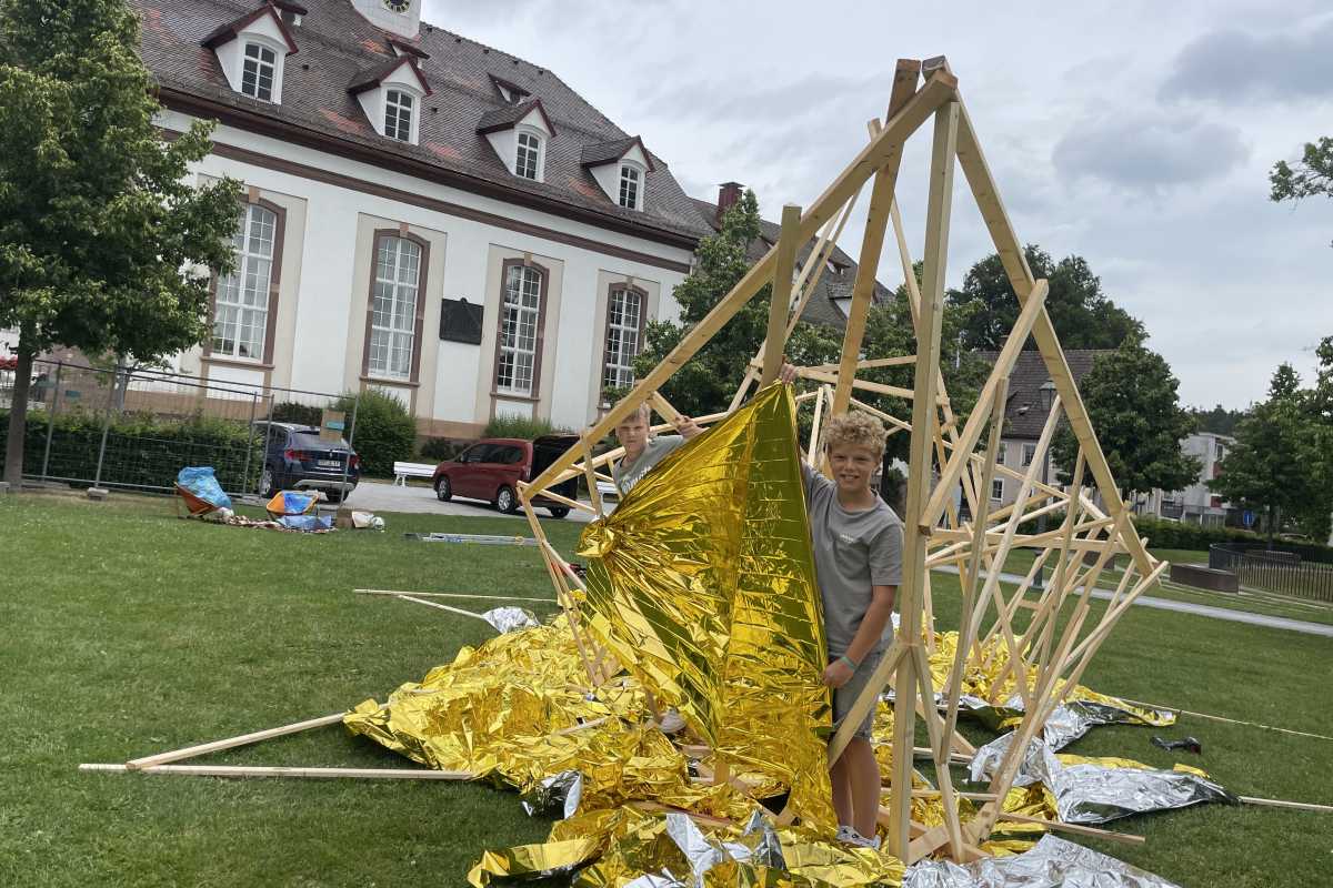 Im Rahmen der Feierlichkeiten zum 50-jährigen Bestehen der Gesamtgemeinde Königsfeld bringen sich die Zinzendorfschulen nicht nur musikalisch mit der Sommerserenade ein – auch der Kunstunterricht trägt einen beeindruckenden Beitrag bei. Seit Mittwoch arbeiten Schülerinnen und Schüler aller Altersstufen an einer großformatigen Kunstinstallation: einem beinahe maßstabsgetreuen Nachbau des Motorboots „tack så mycket“ auf dem Zinzendorfplatz.