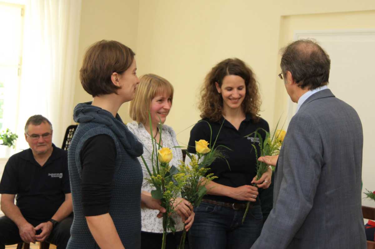 Ebenso herzlich wurden Kollegen verabschiedet, die nicht so lange an den Zinzendorfschulen unterrichteten. Br. Wittmann bedauerte, dass Sr. Wedel nur ein Jahr an den Zinzendorfschulen bleiben konnte. „Wir hätten sie gerne behalten“, meinte er, was Br. Treude auch den drei Referendarinnen Sr. Wodsack, Sr. Ost und Sr. Bornemann bescheinigte. „Es gibt so einige Schüler, die ihre Versetzung nur Ihrem Einsatz zu verdanken haben.“ Er bedauerte, dass an den Zinzendorfschulen für die Referendarinnen keine Stelle frei ist. Diese bedankten sich für die Unterstützung der Kollegen, die ihnen oft mit guten Ratschlägen geholfen hatten.