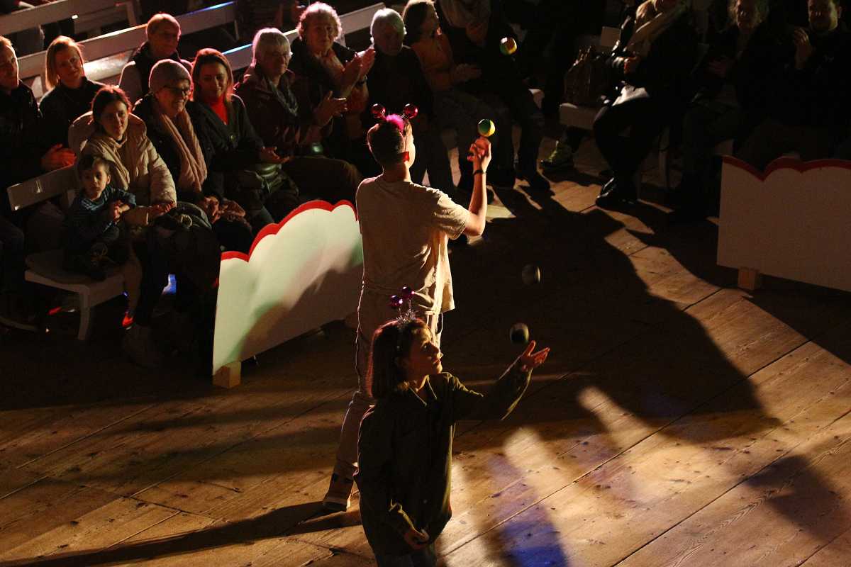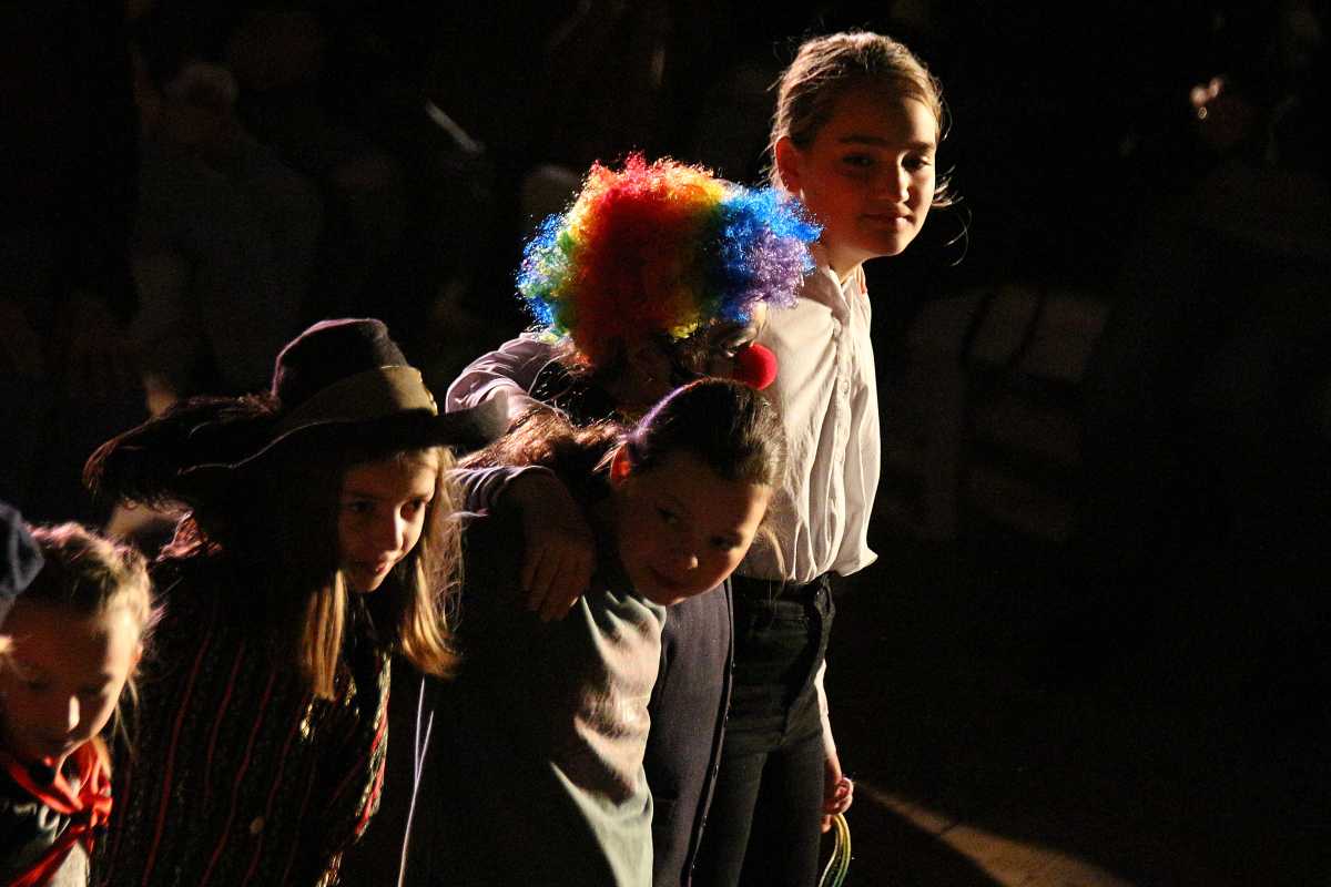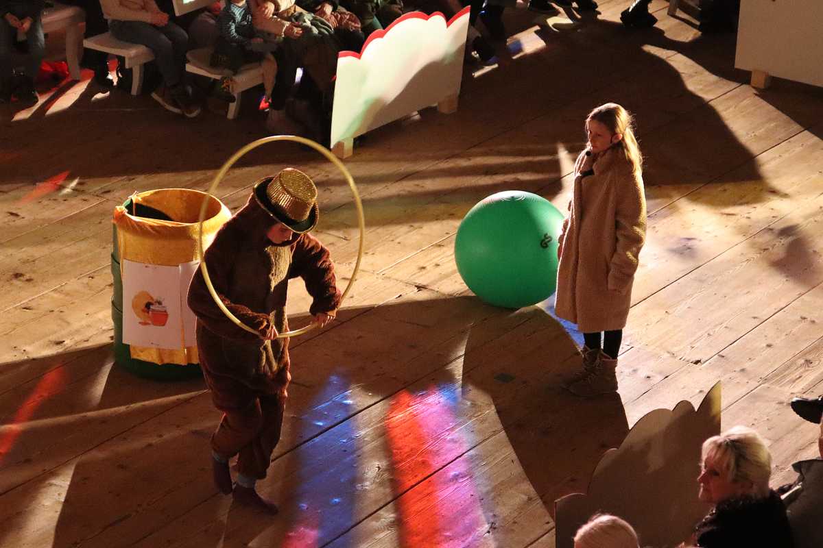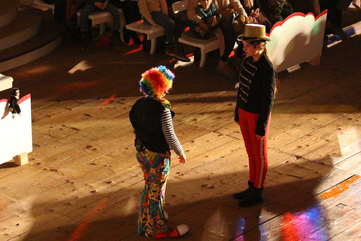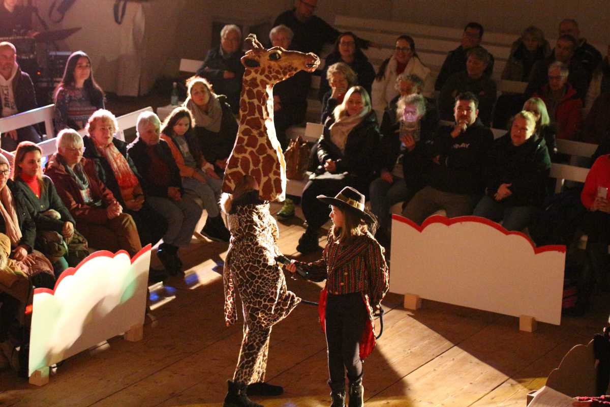 Der Clown erwies sich dabei als rettender Engel so reihte sich ein spektakulärer Auftritt an den nächsten: Ein Elefant, der Foxtrott tanzt, eine bauchredende Giraffe, wilde Pferde, ein faszinierender Fakir und selbst Messerwerfer und Feuerschlucker wechselten sich in dem kurzweiligen Musical „Für alle Kinder unter 100“ ab.