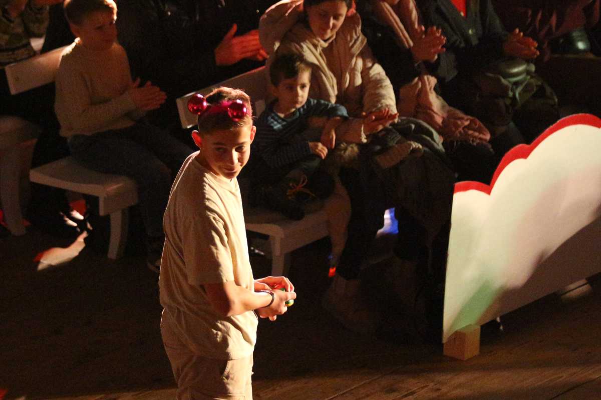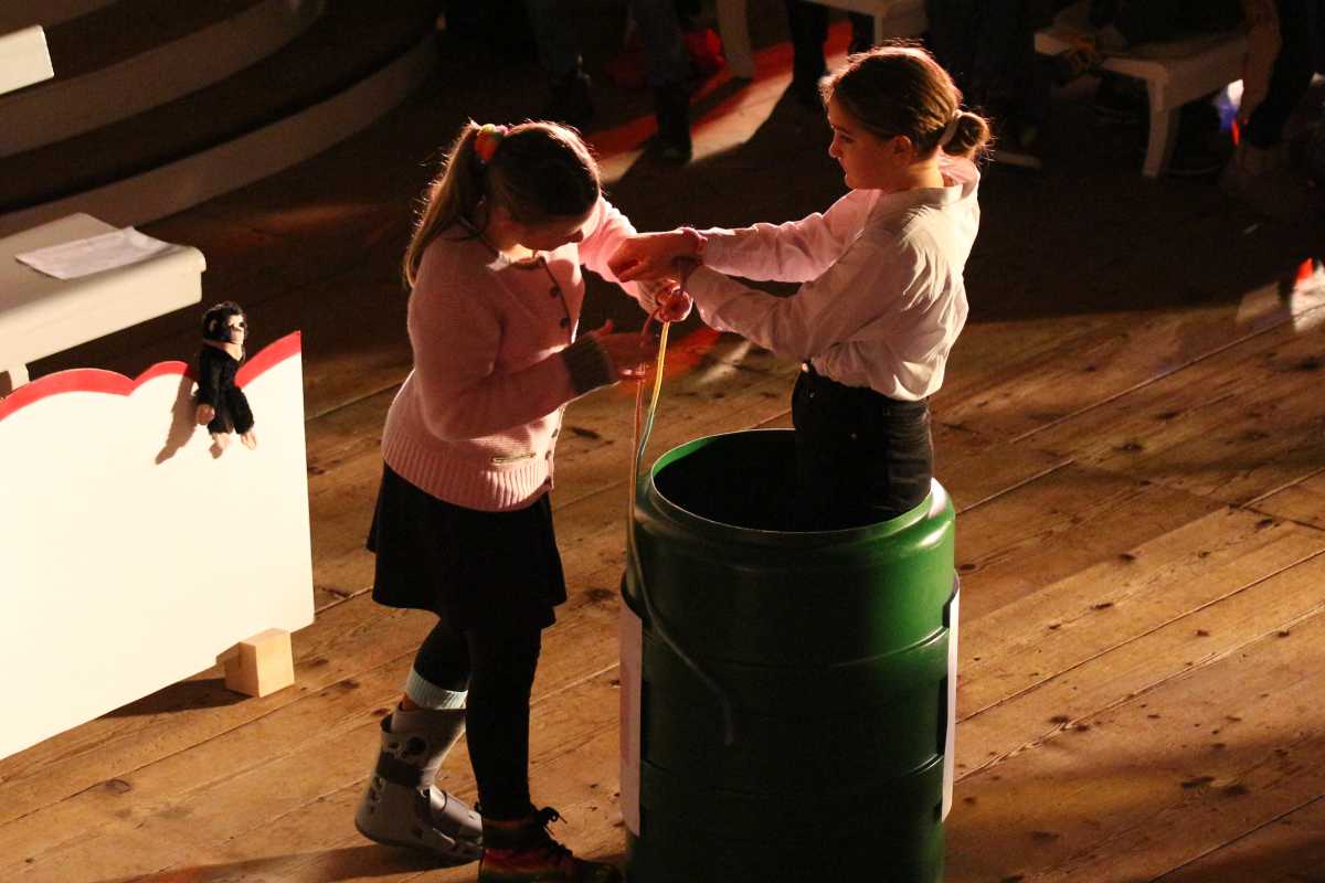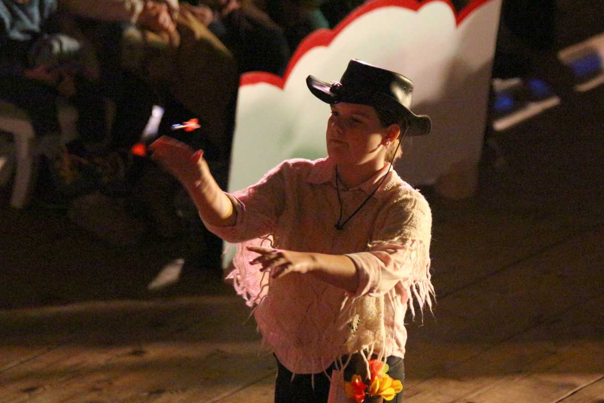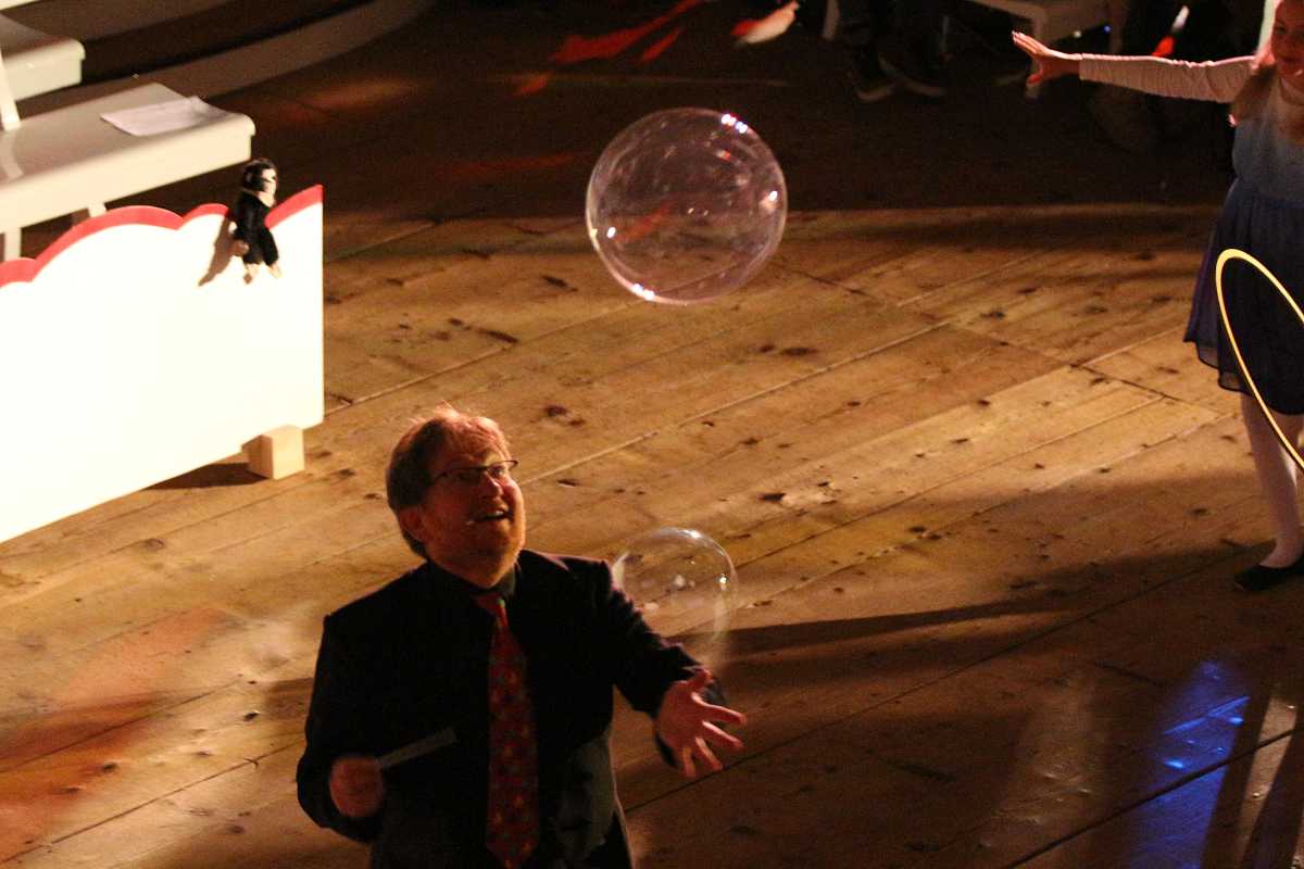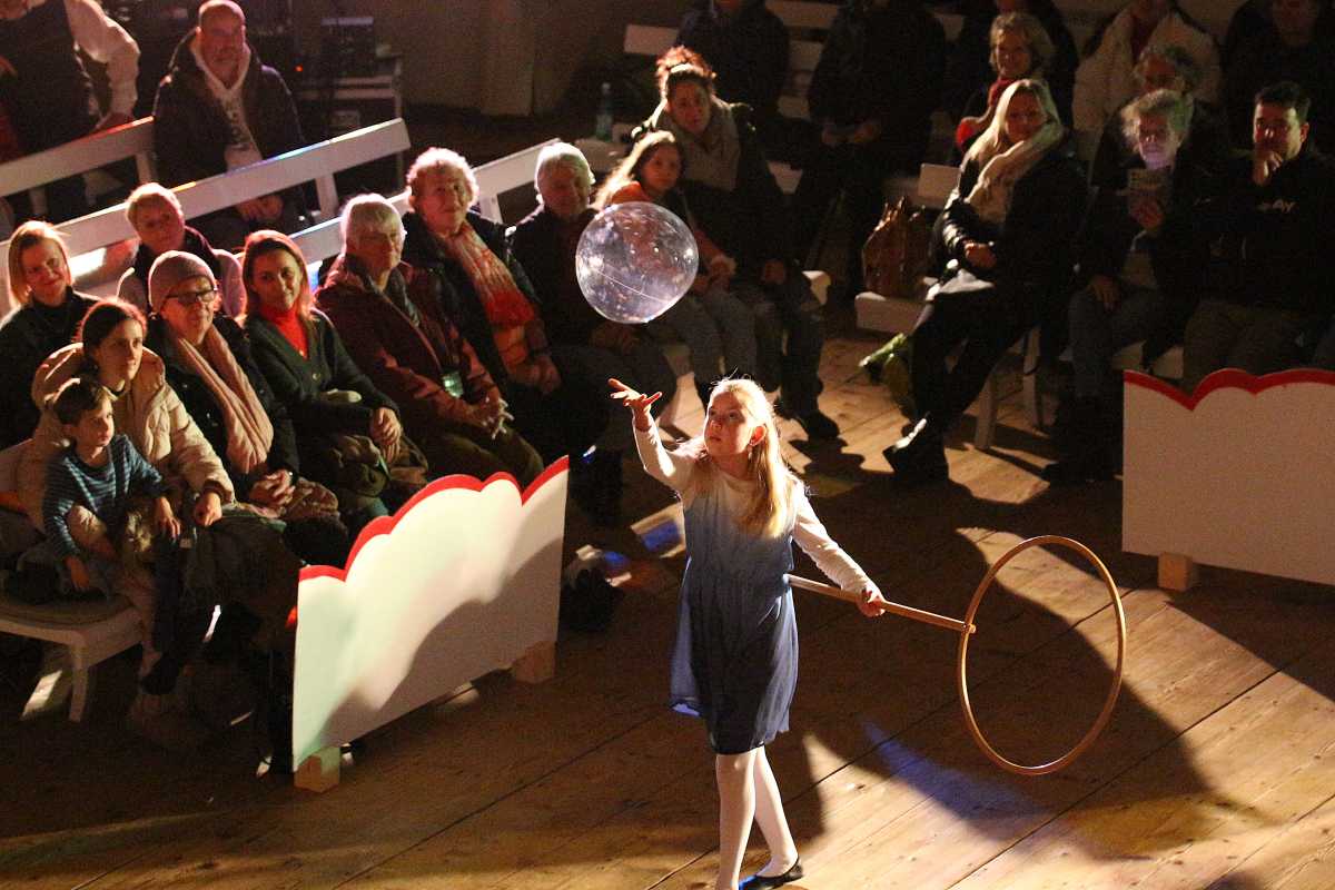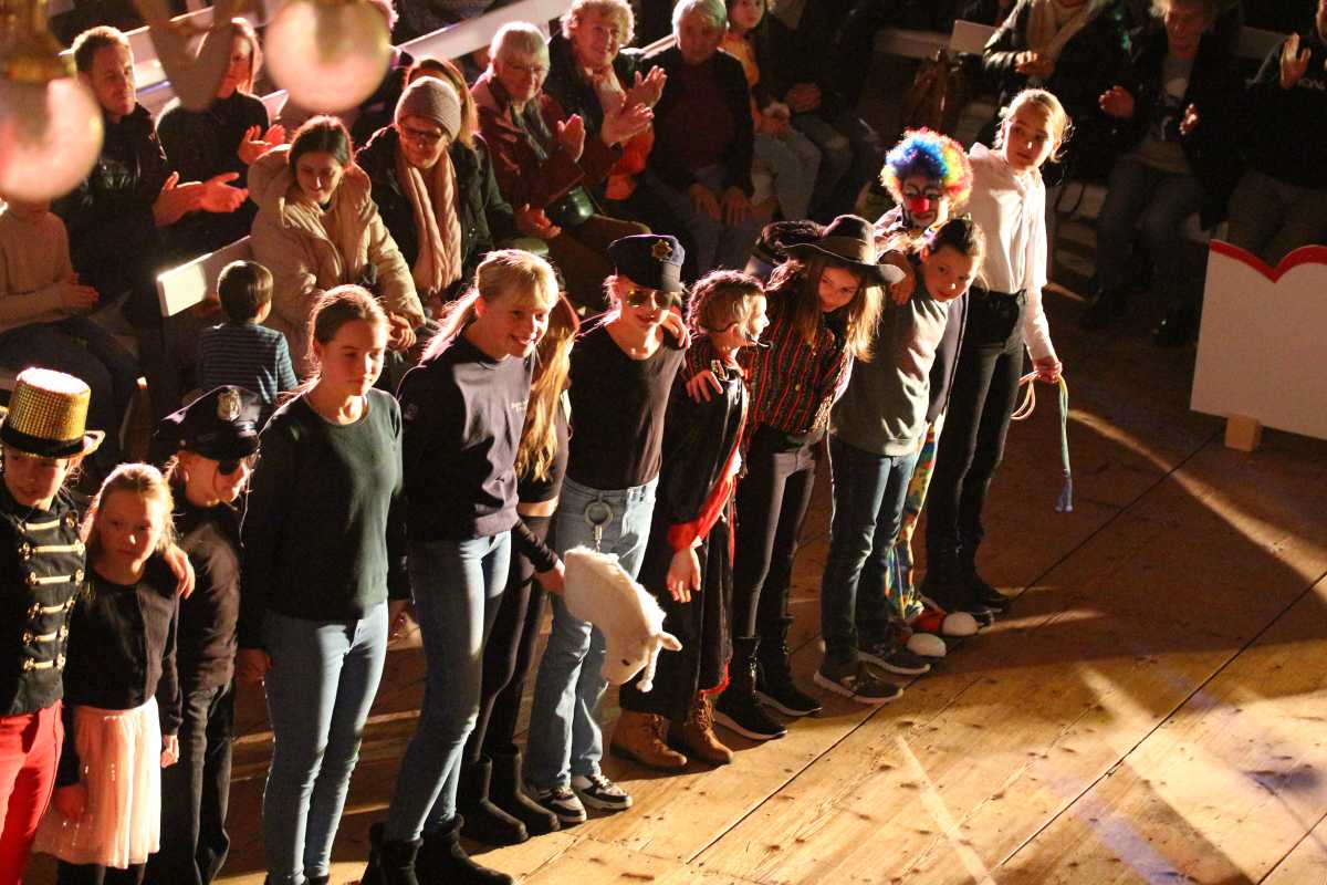 Der Clown erwies sich dabei als rettender Engel so reihte sich ein spektakulärer Auftritt an den nächsten: Ein Elefant, der Foxtrott tanzt, eine bauchredende Giraffe, wilde Pferde, ein faszinierender Fakir und selbst Messerwerfer und Feuerschlucker wechselten sich in dem kurzweiligen Musical „Für alle Kinder unter 100“ ab.