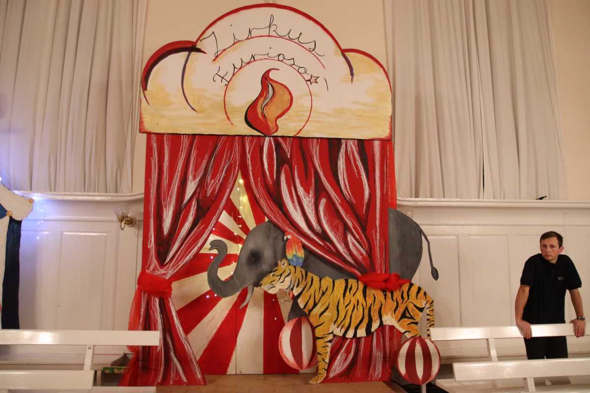 Ein furioses Kindermusical hatte das Publikum am Altschüler-Wochenende in eine magische Zirkuswelt mit Clown, wilden Tieren, Seiltanz, Zauberei, Jonglage und vielem mehr entführt. Unter der Leitung von Johannes Michel wurde der Kirchensaal kurzerhand zur Manege umfunktioniert, die Bänke waren neu angeordnet, um Platz für das Spektakel des "Zirkus Furioso" zu schaffen. Unter der Schwesternempore saß der Chor der sechsten Klassen (Co-Einstudierung Birgit Maier), die grandiose Zirkusband saß direkt daneben und zauberte mit Musik ganz unterschiedlicher Stile eine mitreißende Stimmung.