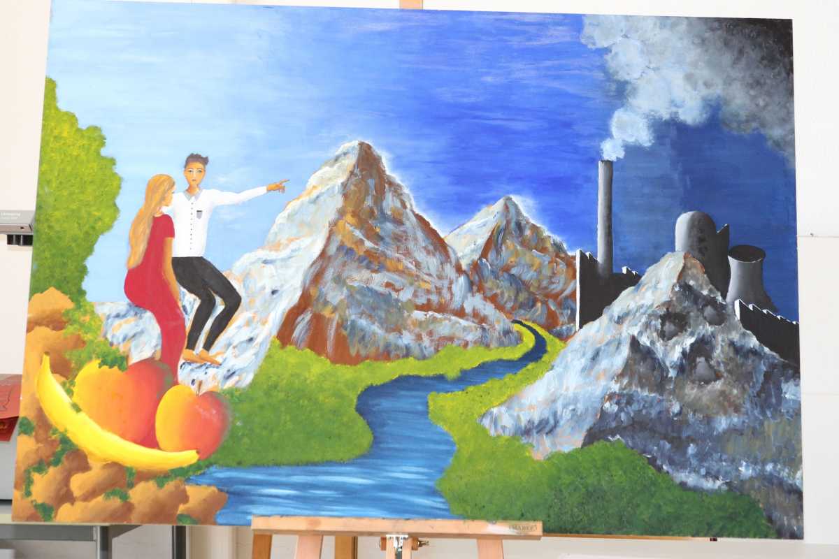 Der Aktionskreis hatte im vergangen Jahr einen pädagogischen Tag im Zeichen des Umweltschutzes organisiert - den ersten, an dem neben Lehrern und Erziehern auch Schüler, Eltern und Mitarbeitende teilnehmen konnten. Kunstlehrer Detlef Ditz-Burk schilderte weitere realisierte und geplante Projekte von sChOOL for Future. Beispielsweise entstand im vergangenen Sommer ein Kurzfilm zum Thema „Paradise Lost“ , der einen Preis in einer Ausschreibung des Landratsamtes gewonnen hatte. Derzeit gibt es viele neue Ideen, die demnächst mit der Schulleitung abgesprochen werden. Darüber hinaus zieht sich das Umwelt-Thema durch den Kunstunterricht aller Jahrgangsstufen, sogar die Fünftklässler haben mit einem dreidimensionalen Dschungel beeindruckende Arbeiten vorgelegt, der Leistungskurs Kunst der 11. Klassen hat sich dem Paradise-Lost-Motiv im Bereich Landschaft und Stillleben genähert.