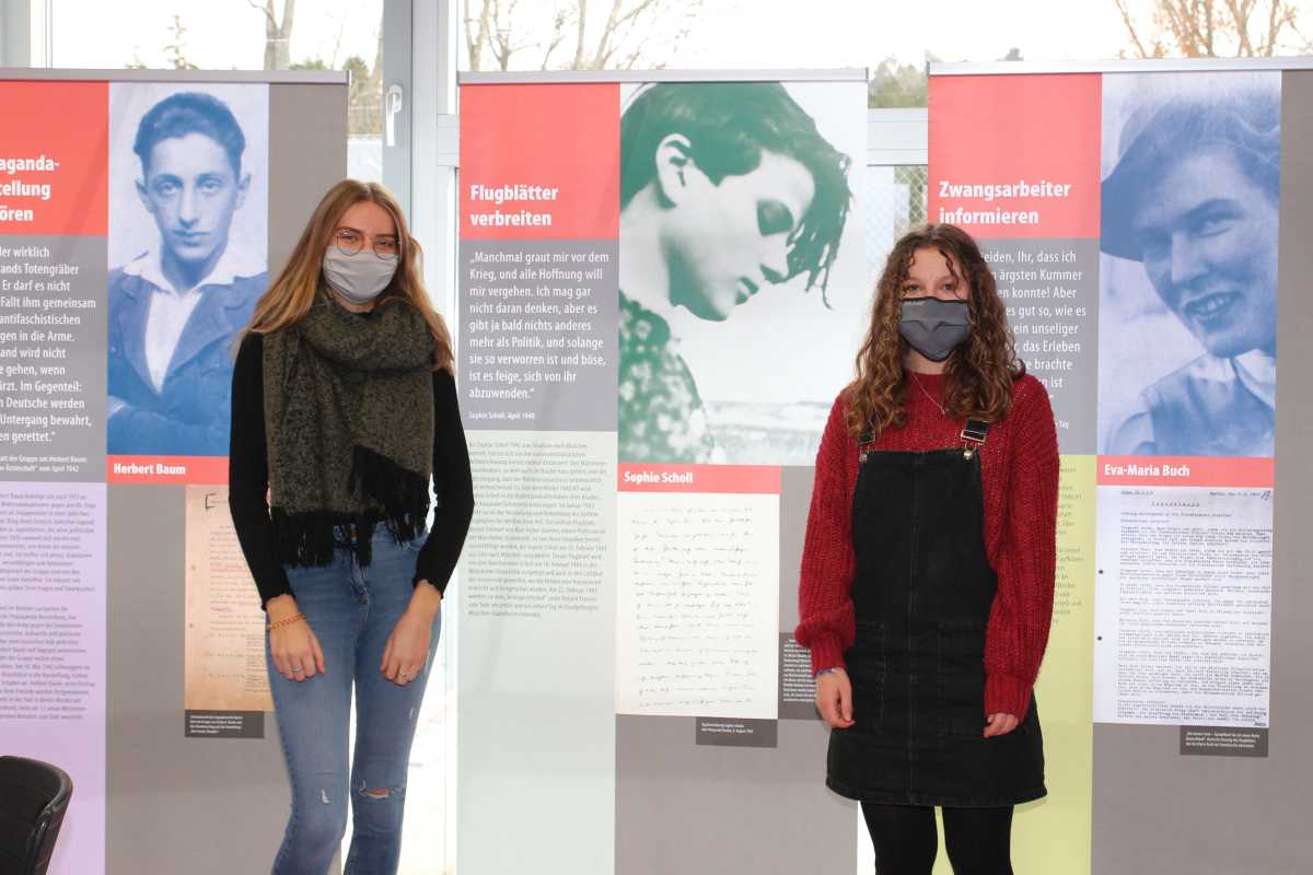 Janina Dold und Clara Ganter hatten sich mit Eva-Maria Buch und Sophie Scholl beschäftigt, die beim Verhör ihr Handeln mit den Worten erklärt hatte: „Das Gesetz ändert sich, das Gewissen nicht“. „Die beiden jungen Frauen bezahlten ihren gewaltlosen Widerstandskampf mit ihrem Leben, nur weil sie ihre kritische Meinung nicht für sich behielten, wie es die meisten damals taten“, sagten die beiden Schülerinnen.