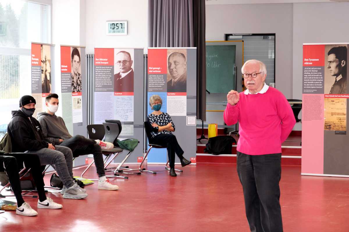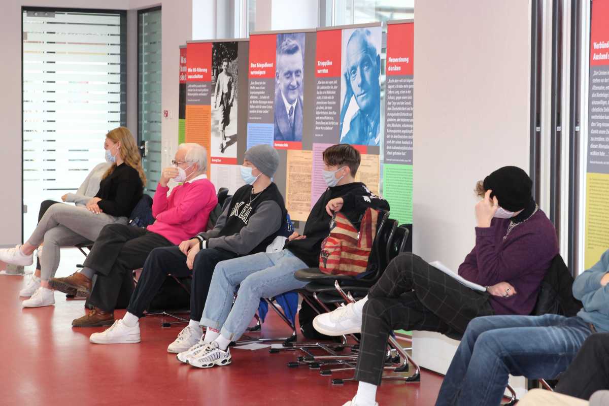 „Er fand es großartig und ich finde großartig, wie ihr euch damit auseinandergesetzt habt“, sagte der Mathematik-Professor Engelke zu den Schülerinnen und Schülern der Klasse WG2. Diese hatten sich Religionsunterricht bei Schulpfarrer Br. Fischer jeweils zu zweit mit den Widerstandskämpfern auseinandergesetzt und weitere Einzelheiten recherchiert, die nicht auf den Plakaten standen. Diese trugen sie dann ihren Mitschülern vor.