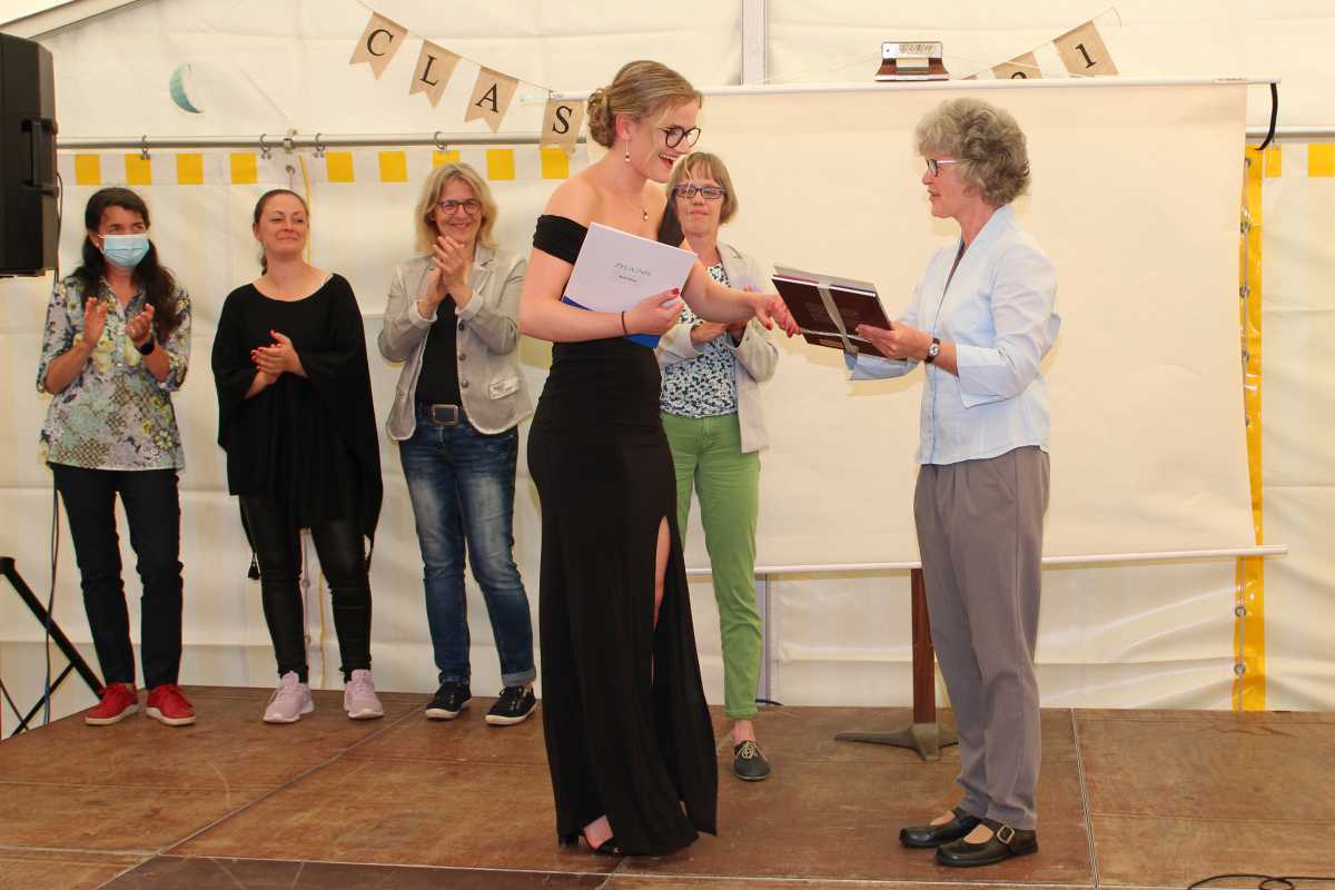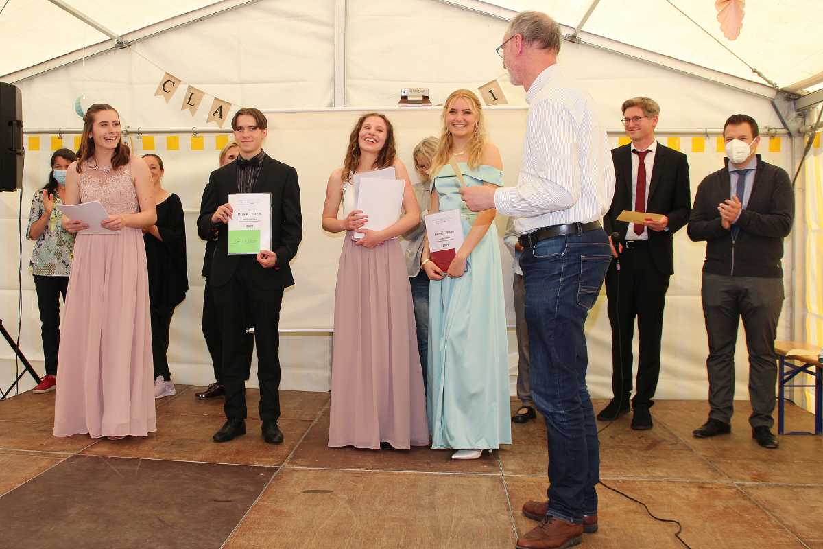 Von den 34 Abiturientinnen haben zwei mit der Traumnote 1,0 bestanden: Jule Aline Dold vom SGG und Janina Dold von WG. Natürlich waren sie auch unter den Preisträger*innen mehrfach vertreten. Folgende Sonderpreise wurden verliehen: Scheffelpreis (Deutsch) – Clara Ganter, Englisch – Janina Dold, Spanisch - Jule Aline Dold und Clara Ganter, Mathe – Jule Aline Dold, Musik - Janina Dold, Clara Ganter, Dominik Schäfer und Kim Schrenk, Amos Comenius-Medaille und den Preis der Heidehof-Stiftung für Pädagogik und Psychologie – Jule Aline Dold, Abiturpreis des Vereins für Sozialpolitik für Wirtschaftswissenschaften sowie der Ökonomiepreis – Janina Dold, Theodor-Lohmann-Preis (Religion) – Rahel Maret, Preis des Elternbeirats für soziales Engagement – Vivian Bellhäuser.