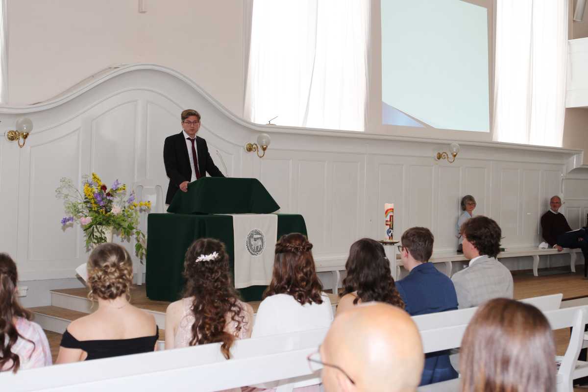 Der Leiter der beruflichen Zinzendorfgymnasien, Br. Sauer, erläuterte die Schmetterlingstheorie aus der Chaosforschung, die besagt, dass schon kleinste Veränderungen große Dinge bewirken können. Auch ermutigte er seine nun ehemaligen Schüler*innen darin, nicht nur Pläne zu schmieden, sondern auch offen für Zufälle zu sein. Er endete mit einem Appell des Gründers der Pfadfinder-Bewegung Robert Baden-Powell: „Versucht, diese Welt ein wenig besser zu verlassen, als ihr sie vorgefunden habt.“